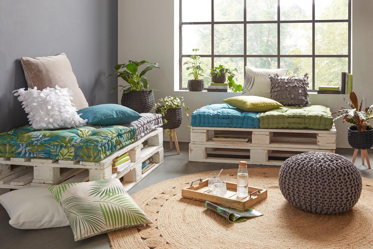 Erst eine weiche Polsterung macht eine Sitzgelegenheit im Garten so richtig gemütlich. Sesselauflagen für Liegestühle sind dabei genauso gefragt wie komfortable Outdoor-Sitzkissen oder der hippe Sitzpouf, der bei mömax etwa in bunt gemusterten Designs erhältlich ist. Ebenfalls voll im Trend liegen die kuscheligen Palettenkissen mit den perfekten Maßen für (selbstgebaute) Gartenbänke aus Europaletten.