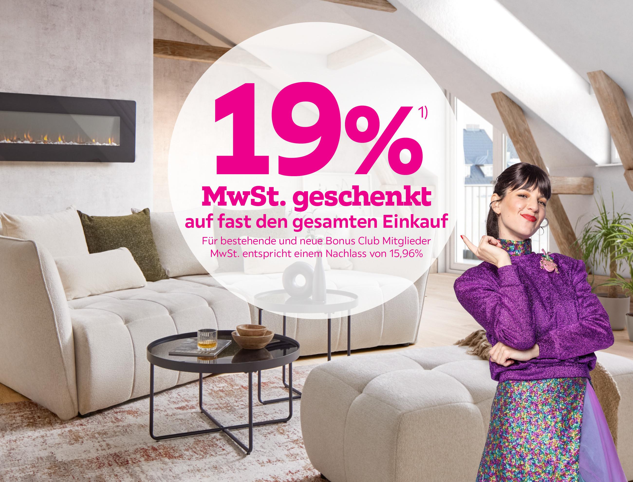 Gültig von 01.10.2025 bis 07.10.2025. Ausgenommen reduzierte sowie in unseren Prospekten oder Werbemitteln beworbene Ware, die im Haus gekennzeichnet ist. Bei Inanspruchnahme keine weiteren Konditionen möglich. Auf deinen Einkauf gewährt dir mömax einen Rabatt in Höhe des Mehrwertsteueranteils, der anfallen würde. Der Mehrwertsteueranteil entspricht einer Minderung von 15,96% des jeweiligen Kaufpreises. Allerdings kann mömax aus gesetzlichen Gründen nicht die Mehrwertsteuer als solche erlassen. Die Bestellbestätigung wird daher weiterhin eine Mehrwertsteuer ausweisen, jedoch bezieht sich diese auf einen entsprechend reduzierten Betrag. Der Kunde ist nicht berechtigt, die Erstattung des auf der Bestellbestätigung ausgewiesenen Mehrwertsteueranteils zu verlangen. Nicht gültig auf bereits getätigte Aufträge, und Kauf von Produkten der Marken Bestpreis, based, Bora, Mid.You, KARE, Miele und Quooker, Gutscheine und Nahrungsmittel. Pro Einkauf und Kunde nur ein Gutschein gültig. Alle Abschläge beziehen sich auf den Abholpreis. Keine Barauszahlung möglich. In unseren mömax Filialen und im mömax Onlineshop gültig.