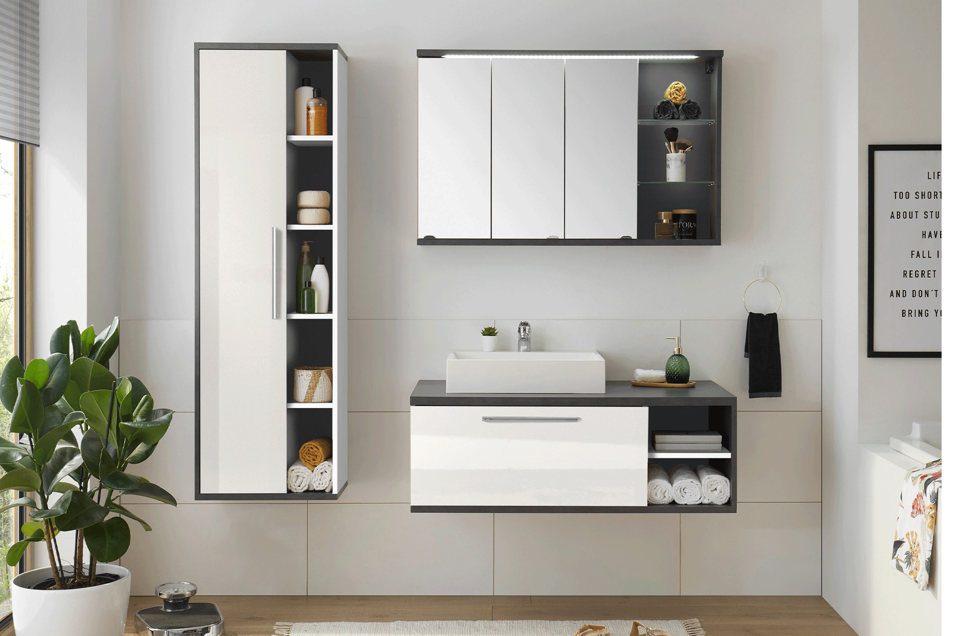 Jeder Deutsche verbringt ca. 1 Jahr seines Lebens im Bad. Ganz schön viel Zeit für einen meist so winzigen Raum. Sollte man sich in der kleinen Nasszelle dann nicht wenigstens pudelwohl fühlen? Mit dem einheitlichen Ambiente einer Badserie, bestehend aus Hochschrank, Spiegelschrank und Waschbeckenunterschrank, wird Ihr Bad im Nu zur Wellness-Oase - versprochen.