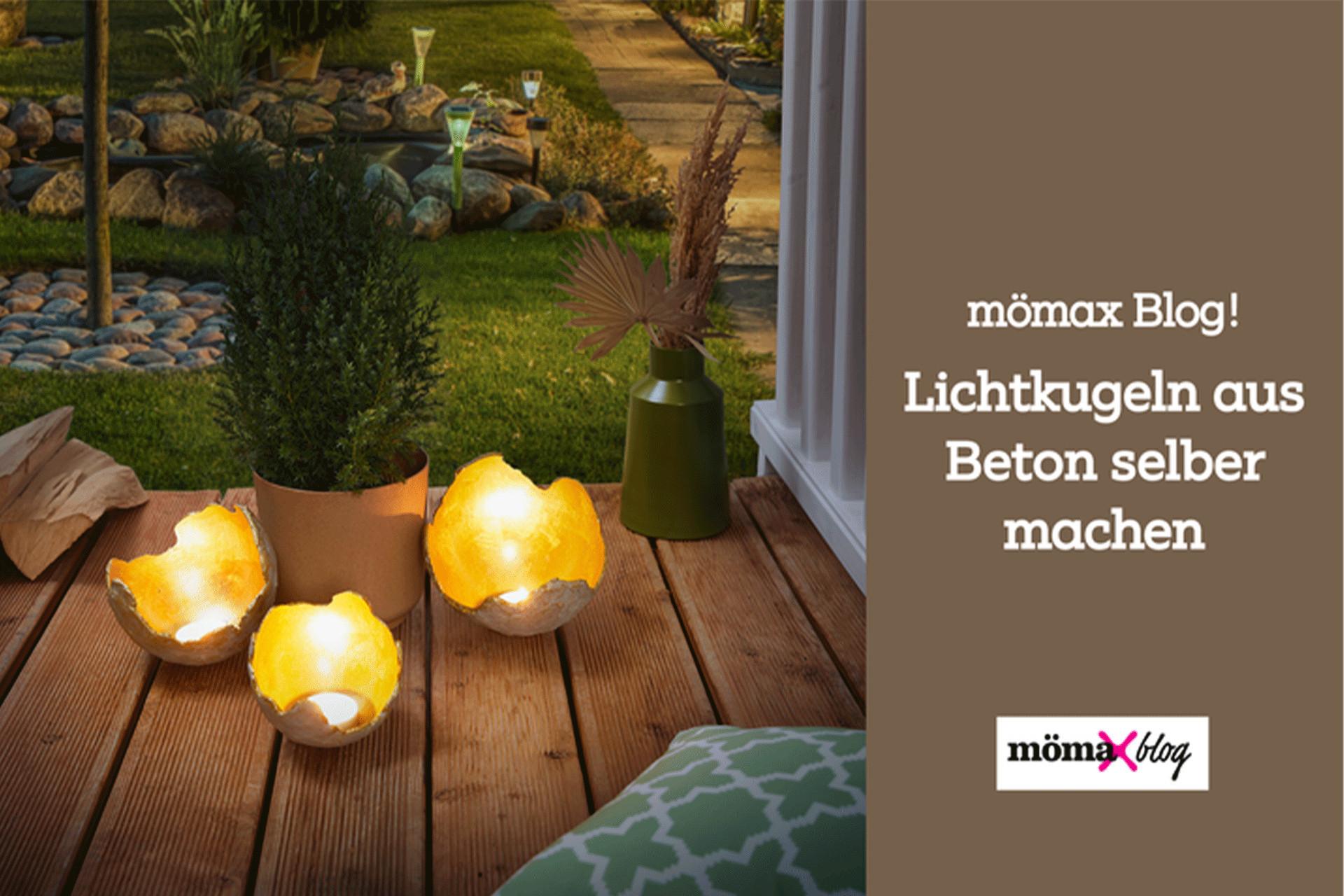 Am Abend lassen Lichterketten, Windlichter und Kerzen die richtige Stimmung entstehen. Lichtkugeln aus Beton kann man ganz einfach selber machen und sorgt somit für ein besonderes Ambiente.
