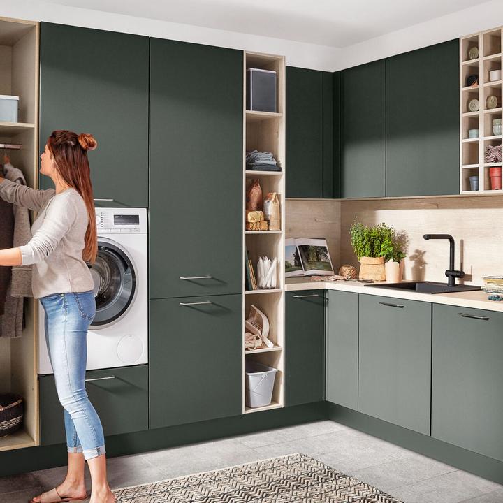 Auch wenn deine Küche nicht riesig ist, musst du auf Komfort und Ordnung nicht verzichten. Mit smarten Stauraum-Lösungen holst du aus jedem Zentimeter das Maximum raus : hohe Schränke nutzen die Raumhöhe, Auszüge sorgen für Überblick, und clevere Ecklösungen machen tote Winkel wieder praktisch.