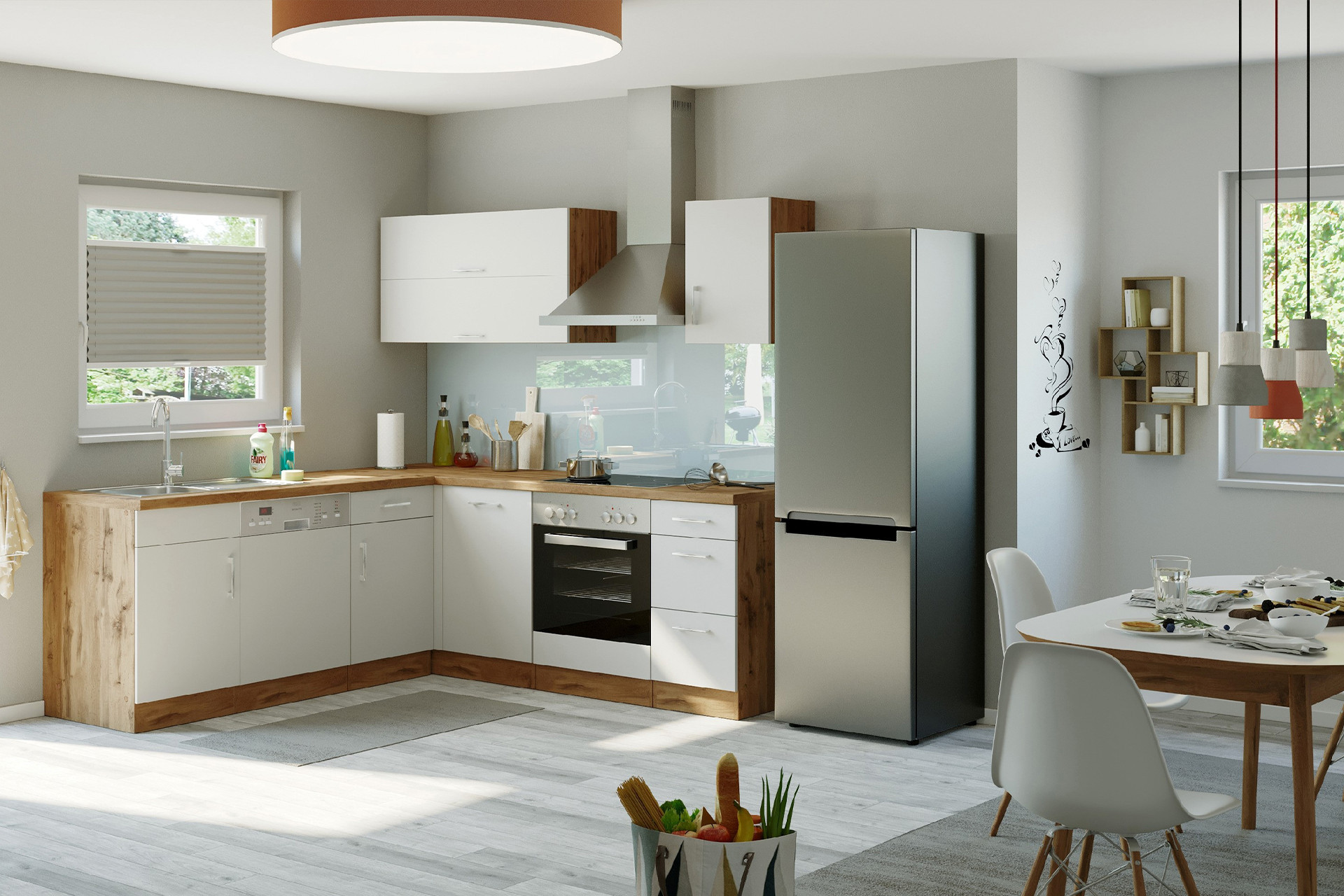Wenn Sie Ihre Küche modular zusammenstellen, sollten Sie vor allem auf Stauraum achten. Dank vieler verschiedener Küchenschränke können Sie aus dem Vollen schöpfen:
