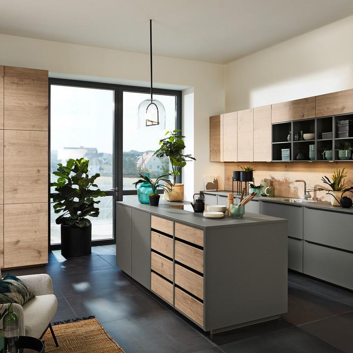 Die Nolte LEAF Küche steht für natürliche Holzoptik mit synchrongeprägter Struktur und moderner Systemplanung. Bei mömax kannst du LEAF individuell planen – passend zu deinem Grundriss, deiner individuellen Ergonomie und deinem Preisrahmen. Gerne kannst du die Planung selber online starten, dich informieren und inspirieren lassen.
