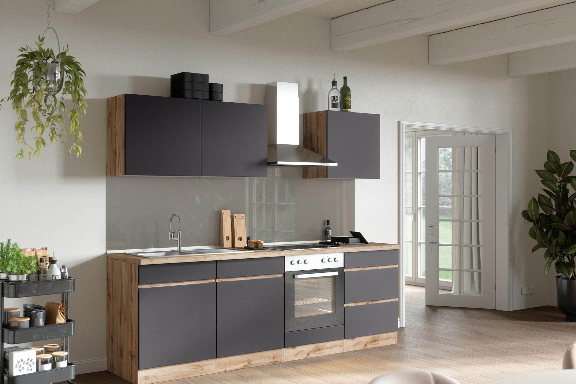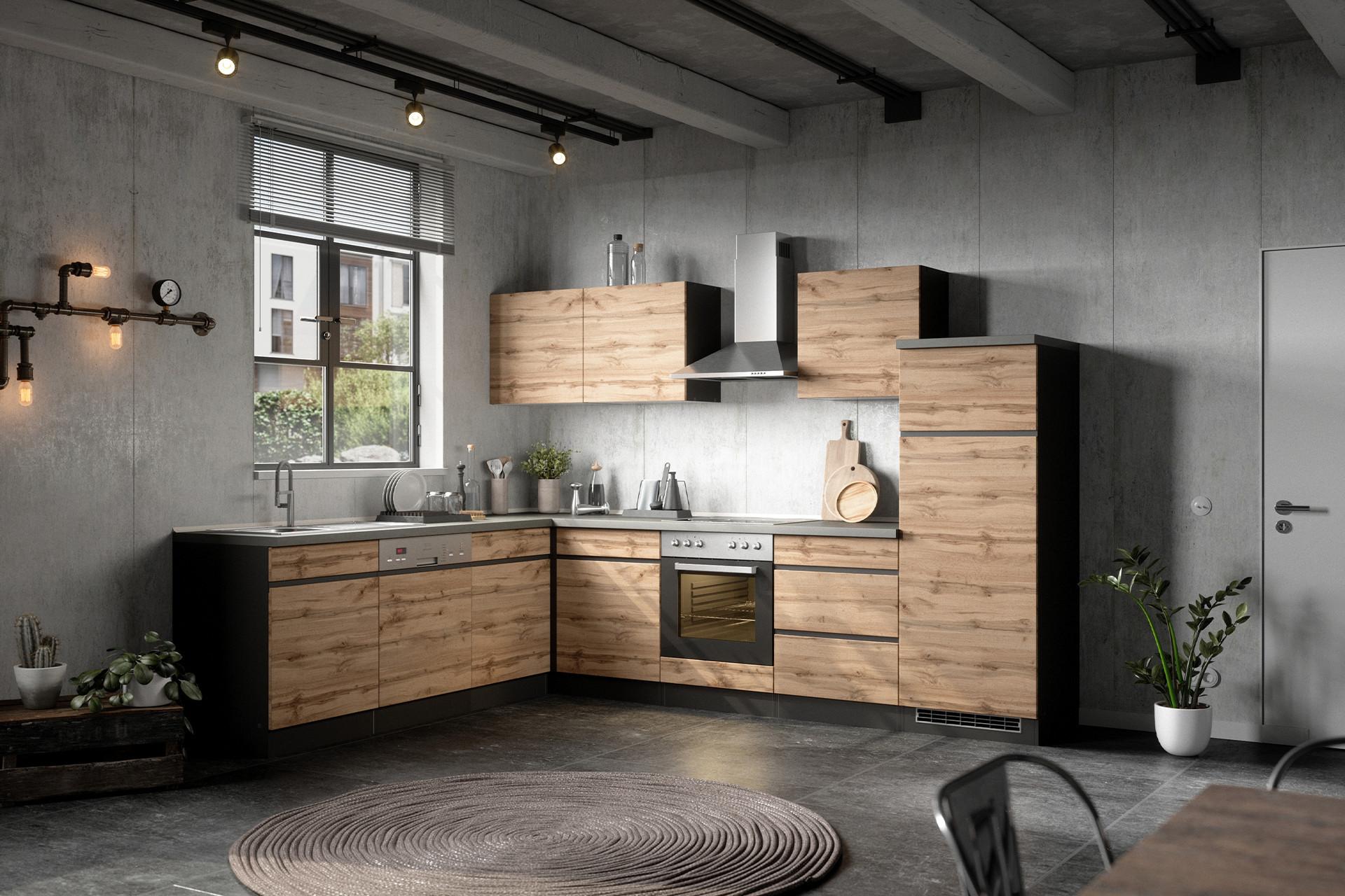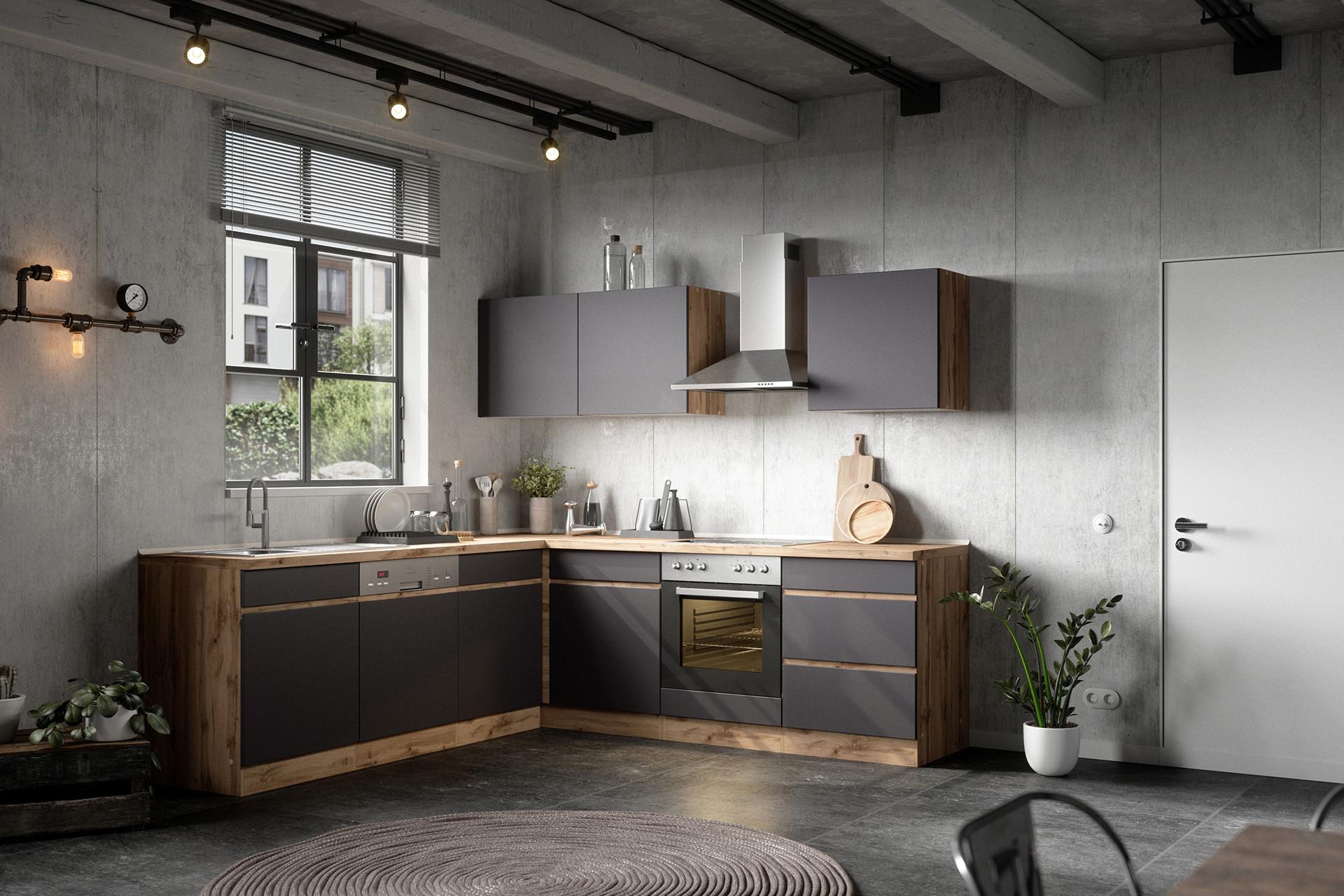 - Arbeitsplatte: 38 mm, Wotan Eiche oder Anthrazit