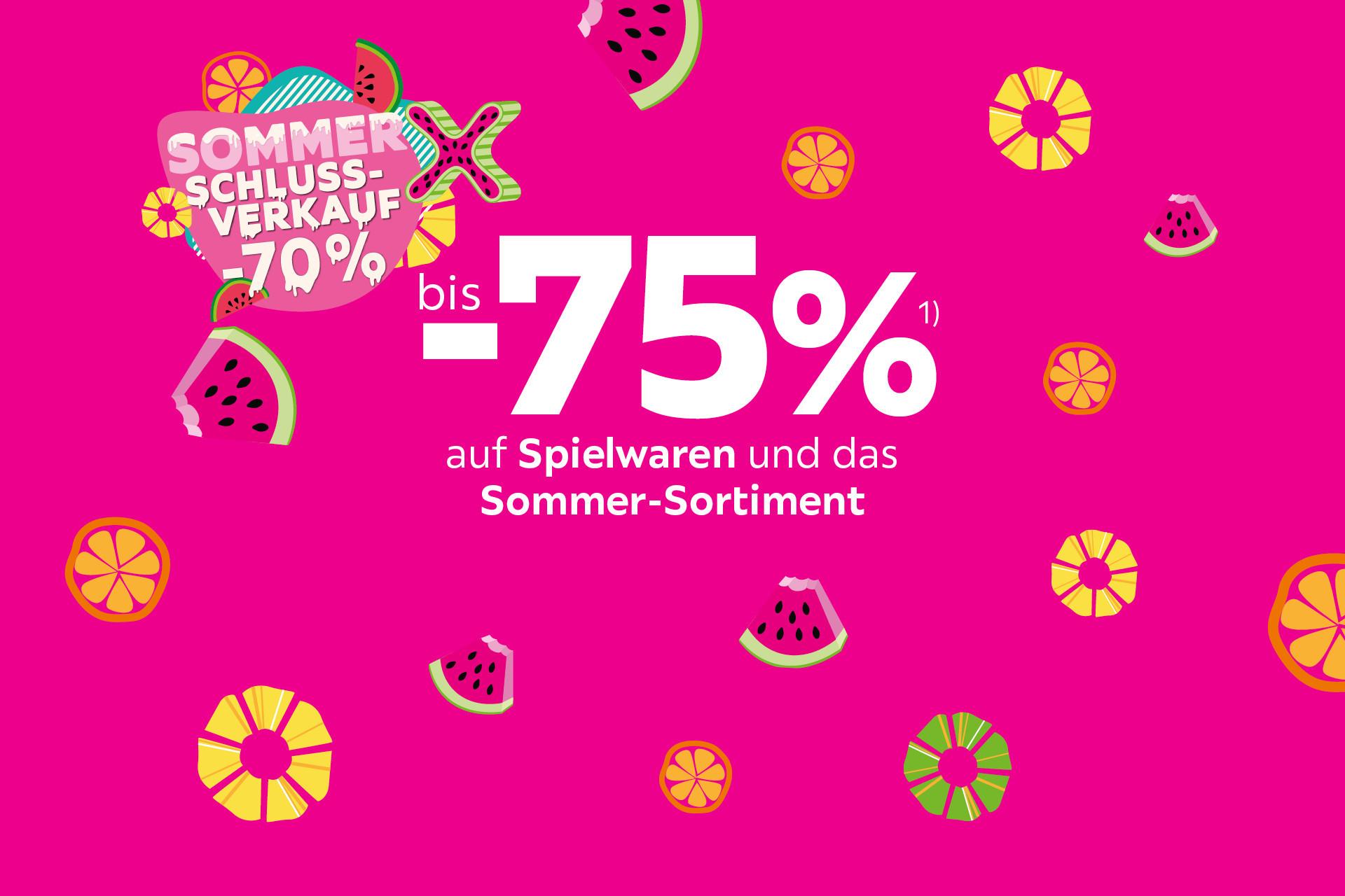 Spielwaren und das Sommer-Sortiment bis zu 75% reduziert.