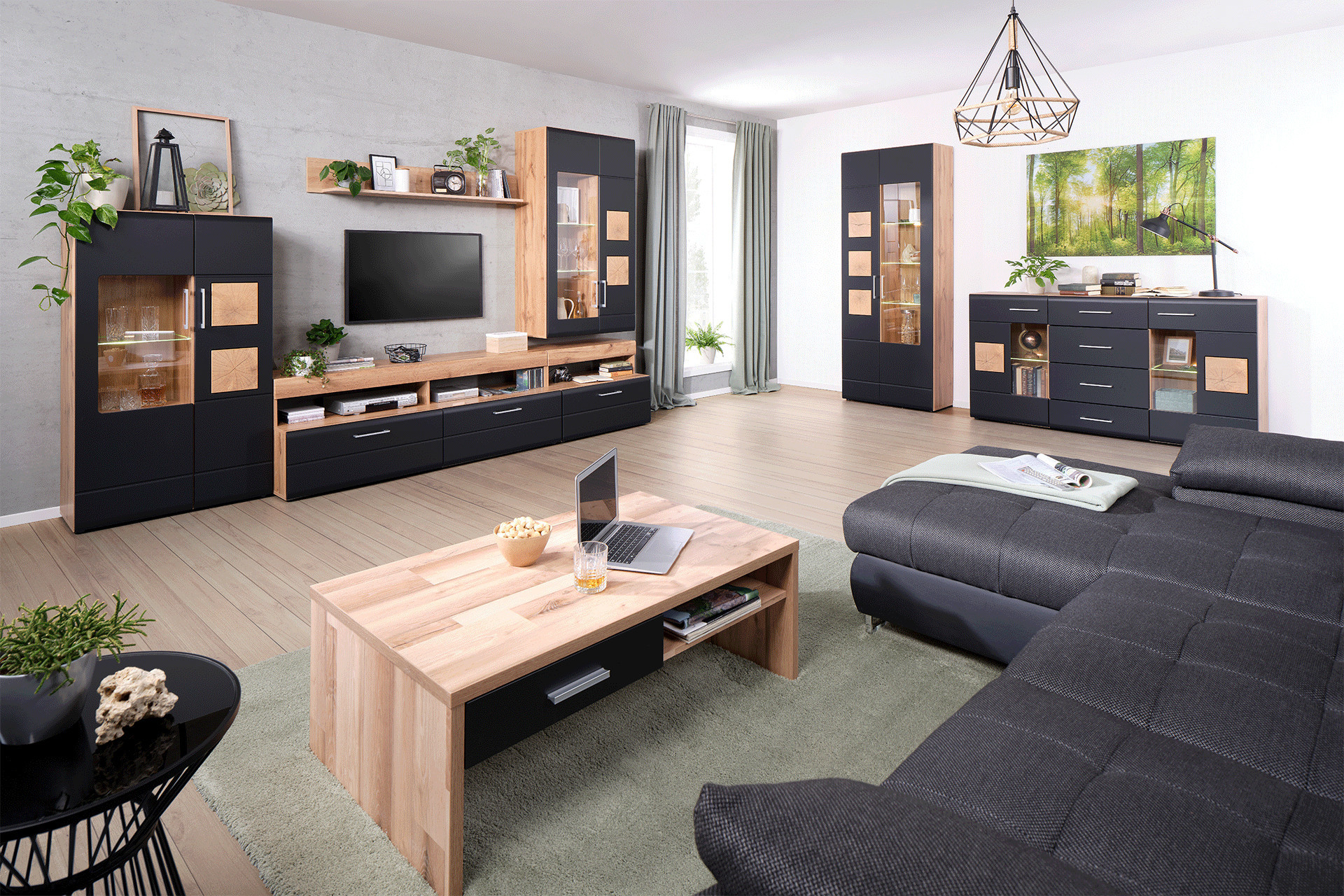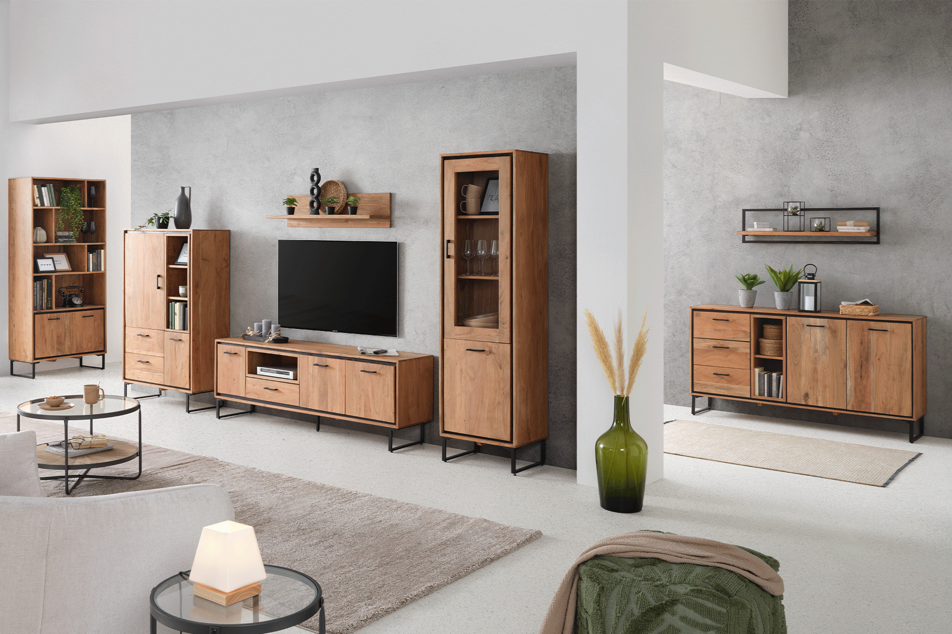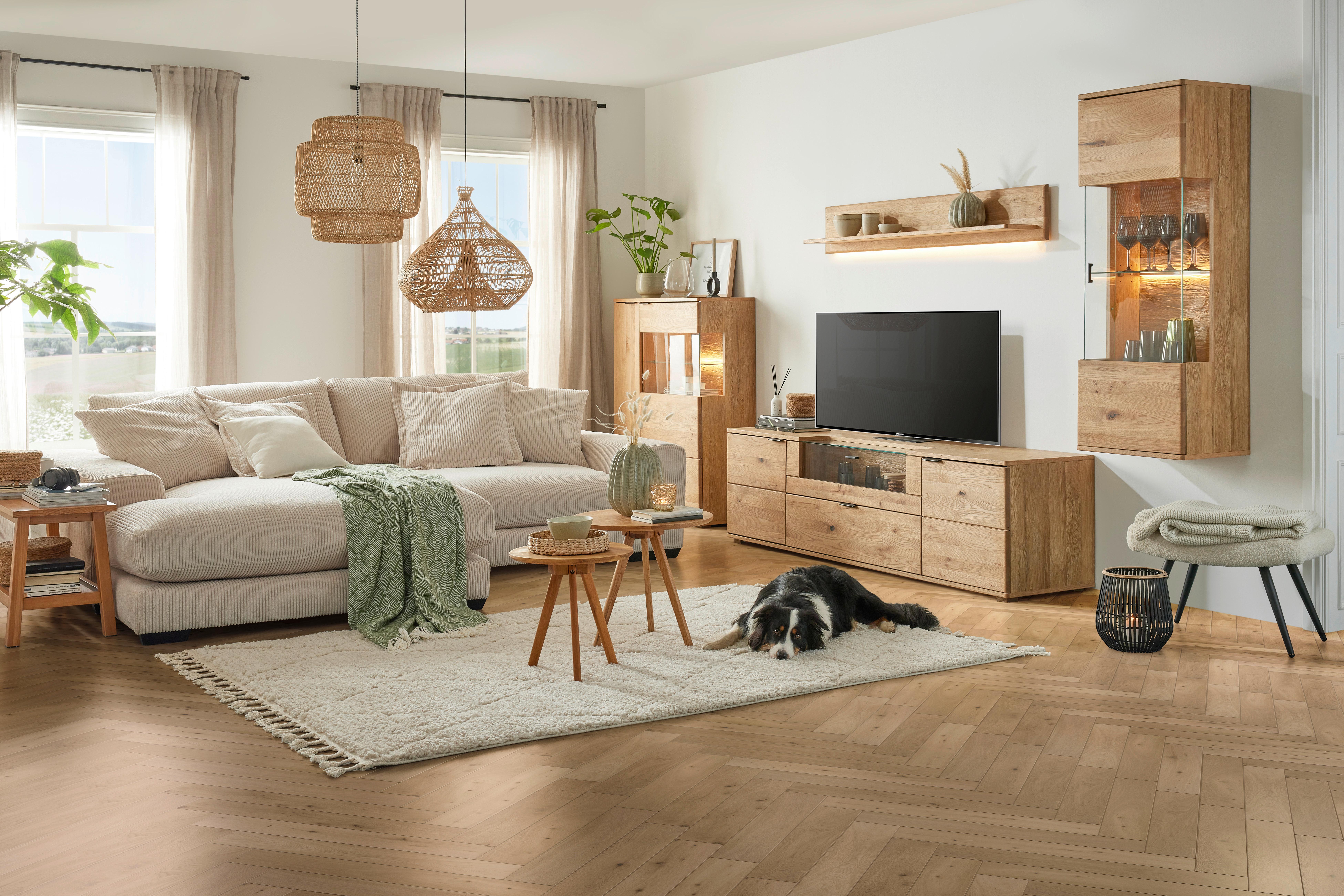 Die Materialien sind bei deinem neuen Wohnzimmer enorm wichtig. Denn nicht nur der Stil, sondern auch Farben und Holzarten müssen zu dir passen. Ein cooler Material-Mix ist dabei eine gute Wahl, denn er sorgt für clevere Abwechslung zwischen sonst eher zurückhaltenden Möbeln. Deine Wohnzimmerserie kann aus Elementen in Schwarz, Weiß oder Grau und ebenso aus Werkstoffen wie Akazie, Mangoholz oder Eiche bestehen. Ganz egal, ob du dich für moderne Wohnzimmermöbel oder Möbel aus Holz entscheidest – probiere doch mal etwas Neues und wage dich an trendige Kombinationen. Dann wird deine neue Wohnzimmerserie sicher zum Gesprächsthema beim nächsten Spieleabend mit Freunden.