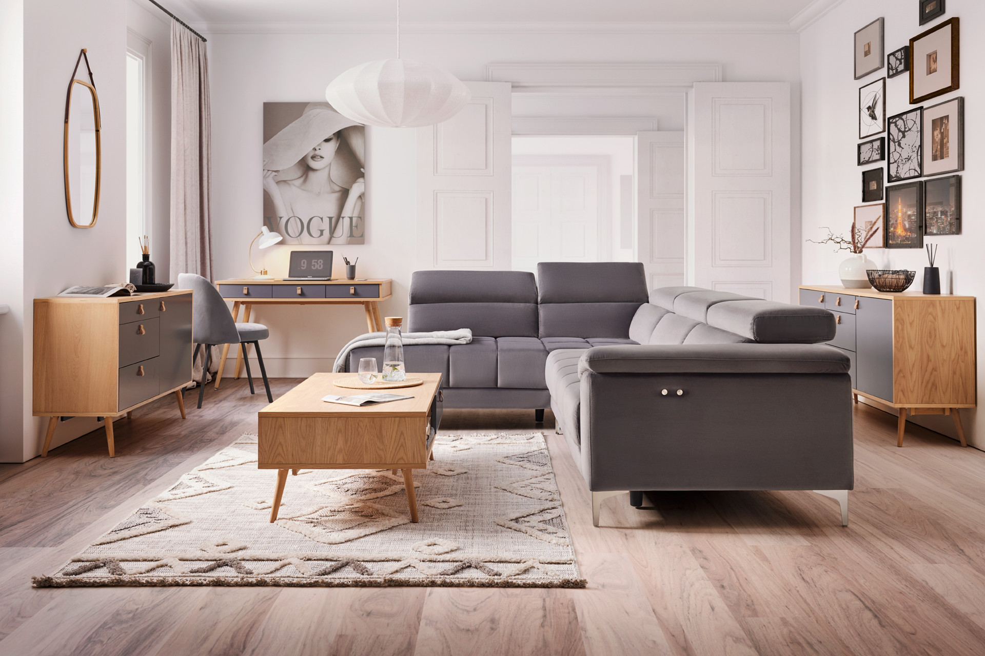 Verschiedene Stile bieten dir eine große Auswahl für jeden Geschmack. Neben Wohnzimmermöbeln im Landhausstil gibt es auch Retro-Wohnzimmermöbel aus den 60er- und 70er-Jahren sowie Wohnzimmermöbel im angesagten skandinavischen Chic. Jeder Trend hat seine Eigenarten und zeichnet sich durch spezielle Besonderheiten aus. Wohnzimmerserien im Landhausstil wirken zwar rustikal, sind durch ihre weiße Farbe und die schicken Details aber gleichzeitig weich und feminin. Ganz anders sind Wohnzimmerprogramme im Retro-Look, die sich durch viel Buchenholz auszeichnen. Skandinavische Wohnzimmermöbel versprechen einen gelungenen Mix aus hellen Tönen und Holzakzenten. Wer es gern hell und freundlich mag, liegt mit dem Scandi-Chic garantiert richtig.