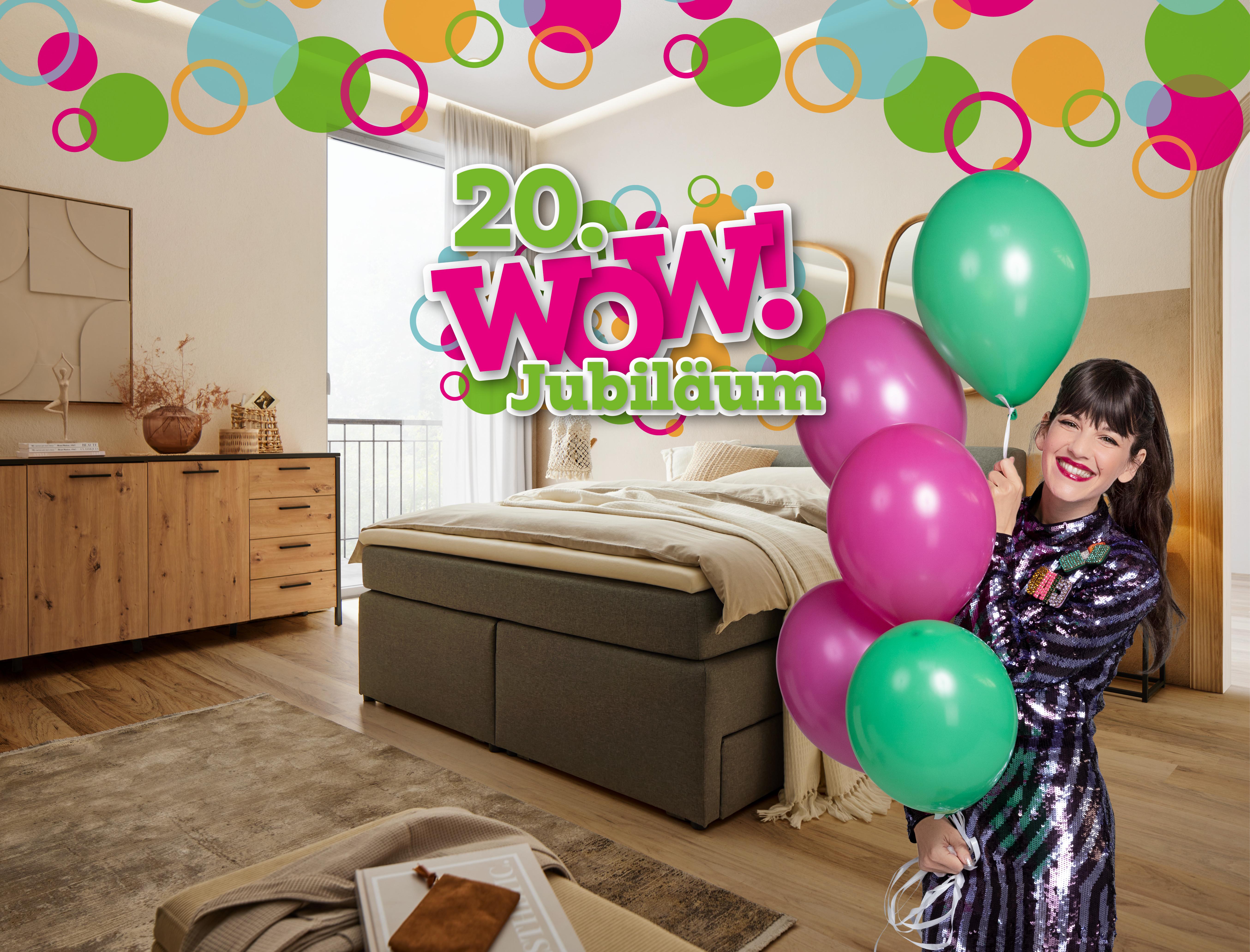 Zu unserem 20. Jubiläum haben wir uns etwas ganz Besonderes für Sie ausgedacht. Freuen Sie sich auf exklusive Jubiläumsrabatte und auf ein tolles Jubiläumsgewinnspiel. Besuchen Sie unsere Filialen oder stöbern Sie online, um von den attraktiven Angeboten zu profitieren. Egal, ob Sie Ihr Wohnzimmer neu gestalten, Ihr Schlafzimmer aufpeppen oder Ihrer Küche einen frischen Look verleihen möchten – bei mömax werden Sie bestimmt fündig.