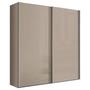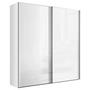 Der Schrank verfügt über zwei Schwebetüren, die sich leicht öffnen und schließen lassen. Die alufarbenen Griffleisten aus Metall unterstreichen das elegante Erscheinungsbild. Im Inneren findest du zwei Kleiderstangen und zwei verstellbare Einlegeböden, die dir flexible Möglichkeiten zur Organisation deiner Kleidung bieten. Die Oberfläche aus Farbglas & Dekorfolie verleiht dem Schrank eine edle Optik.