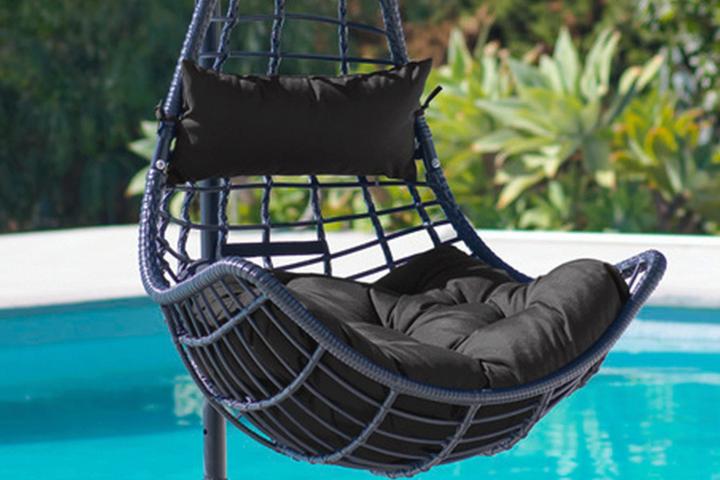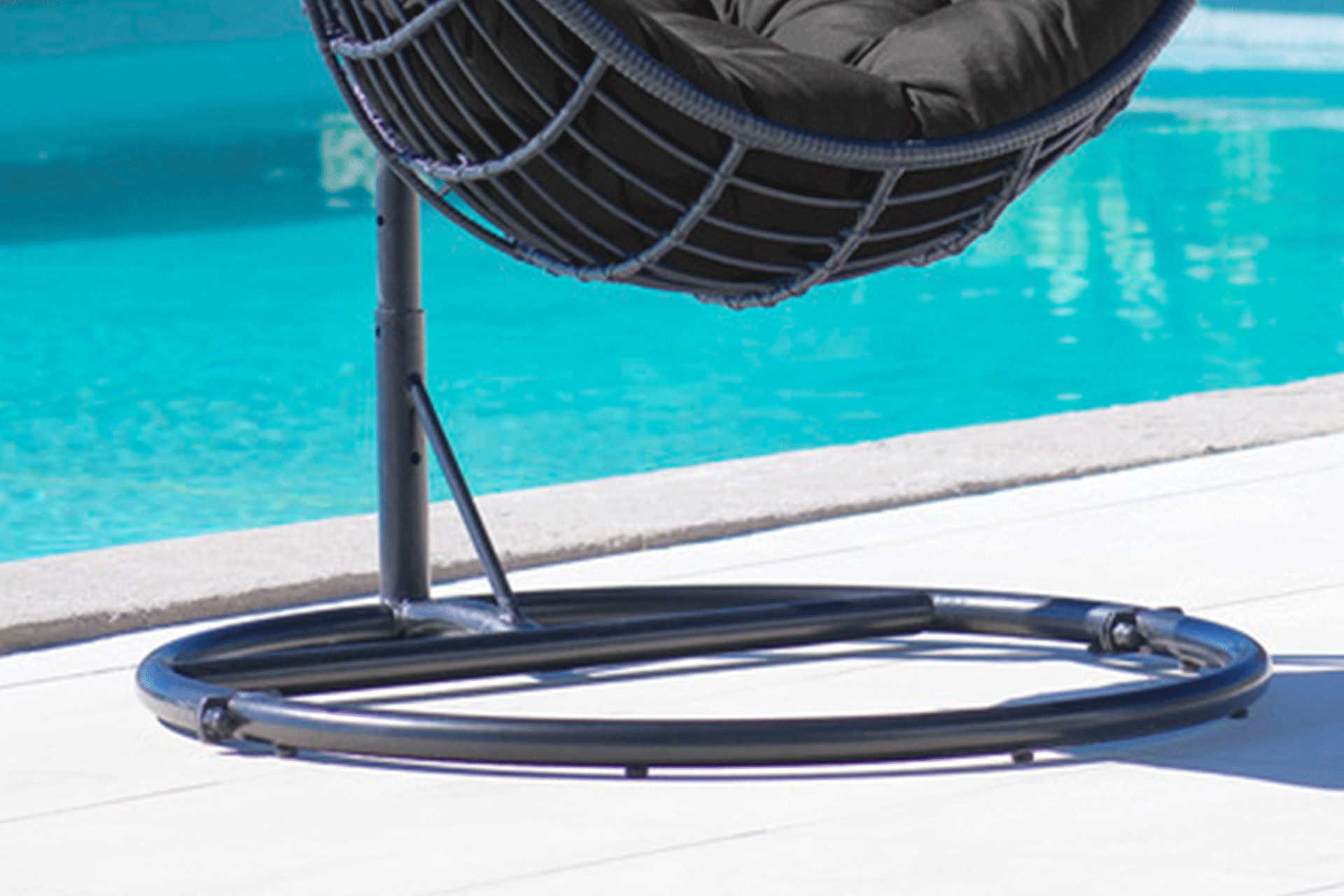 Dieser Hängesessel vereint Stabilität und höchsten Komfort. Sein robustes, rostbeständiges Stahlgestell gewährleistet einen sicheren Stand und zeichnet sich durch Langlebigkeit sowie Witterungsbeständigkeit aus. Der Sitz aus hochwertigem Polyrattan überzeugt mit seiner gemütlichen, pflegeleichten und widerstandsfähigen Beschaffenheit. Dank der perfekten Kombination aus solider Konstruktion und einladendem Design wird dieser Hängesessel zum idealen Rückzugsort für entspannte Momente – egal ob im Garten, auf der Terrasse oder im Wohnbereich.