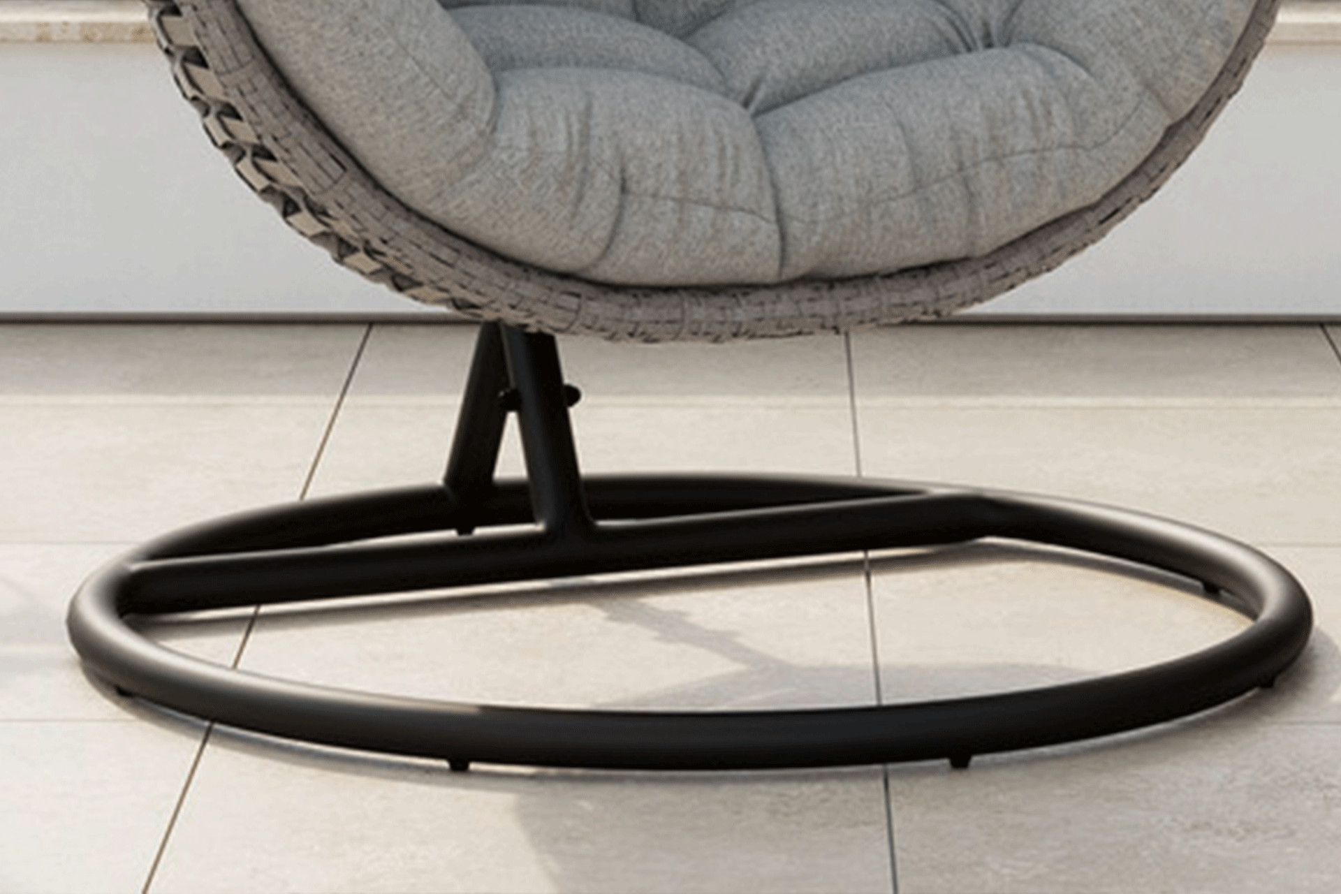 Dieser exklusive Hängesessel vereint höchsten Komfort mit außergewöhnlicher Stabilität. Sein robustes Metallgestell aus pulverbeschichtetem Stahl in Schwarz bietet eine sichere und belastbare Basis. Die widerstandsfähige Pulverbeschichtung schützt das Gestell zuverlässig vor Rost, Kratzern und Witterungseinflüssen, sodass der Sessel sowohl drinnen als auch draußen genutzt werden kann. Dank seines eleganten schwarzen Designs fügt er sich harmonisch in verschiedene Wohn- und Gartenstile ein und verleiht jedem Raum eine moderne, stilvolle Note.