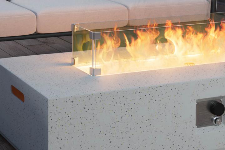 Der Tisch dieser Garnitur besticht durch seine durchdachte Funktionalität. Mit einer speziellen Einbuchtung für eine Feuerschale ausgestattet, ermöglicht er es Ihnen, auch an kühleren Abenden eine gemütliche Atmosphäre zu genießen. Darüber hinaus bietet der Tisch genügend Platz für Getränke, Snacks oder Dekoration, sodass er nicht nur ein funktionales Möbelstück ist, sondern auch das perfekte Accessoire für gesellige Stunden und entspannte Momente im Freien.