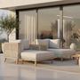 Eine elegante und funktionale Loungegarnitur in Akaziefarbe bringt sowohl Stil als auch Praktikabilität in jedes Zuhause. Sie besteht aus einem Tisch und zwei Sitzbänken, die nicht nur höchsten Komfort bieten, sondern auch eine einladende Atmosphäre schaffen, um mit Familie und Freunden zu entspannen. Die Akaziefarbe verleiht der Garnitur eine edle und zeitlose Optik, die durch die robusten Materialien und die sorgfältige Verarbeitung noch verstärkt wird. Diese Loungegarnitur ist mehr als nur ein praktisches Möbelstück – sie wird zu einem wahren Blickfang in Ihrem Garten, auf der Terrasse oder im Wintergarten.