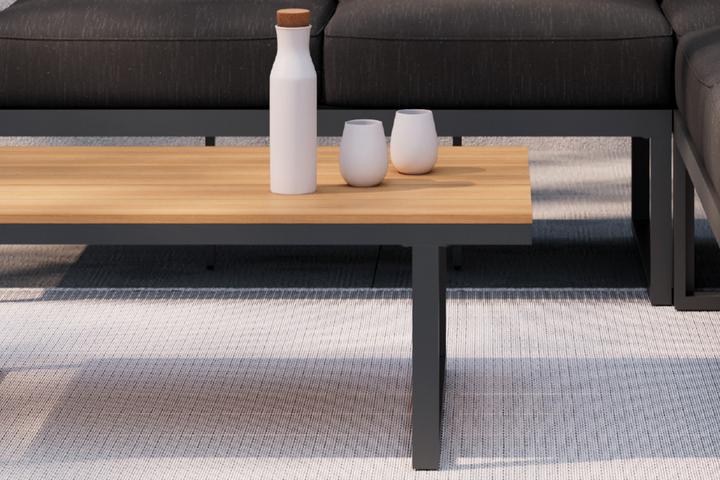 Die Polywood-Tischplatte überzeugt durch ihre Witterungsbeständigkeit. So bleibt der Tisch auch bei wechselnden Wetterbedingungen ein Hingucker. Gemeinsam mit den praktischen Abstellflächen an den Seiten entsteht ein harmonisches Gesamtbild, das sowohl Stil als auch Komfort bietet – perfekt für gesellige Runden oder gemütliche Stunden im Freien.