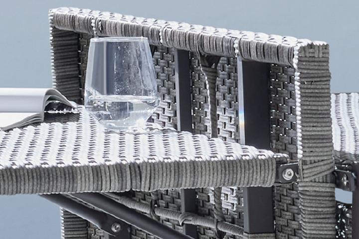 Das Set kombiniert Poly-Rattan und Metall, zwei besonders wetterbeständige Materialien, die sich ideal für den Outdoor-Bereich eignen. Poly-Rattan ist wasserabweisend, UV-beständig und pflegeleicht, was es besonders langlebig und ideal für den Garten oder Balkon macht. Auch bei starkem Regen oder hoher Luftfeuchtigkeit bleibt das Material in einwandfreiem Zustand. Darüber hinaus ist Poly-Rattan pflegeleicht und lässt sich problemlos reinigen. So bleibt das Set über Jahre hinweg formstabil und behält seine Struktur.