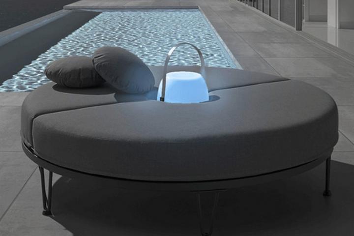 Sonnenliege Evelina Grau Metall/Outdoorstoff mit LED