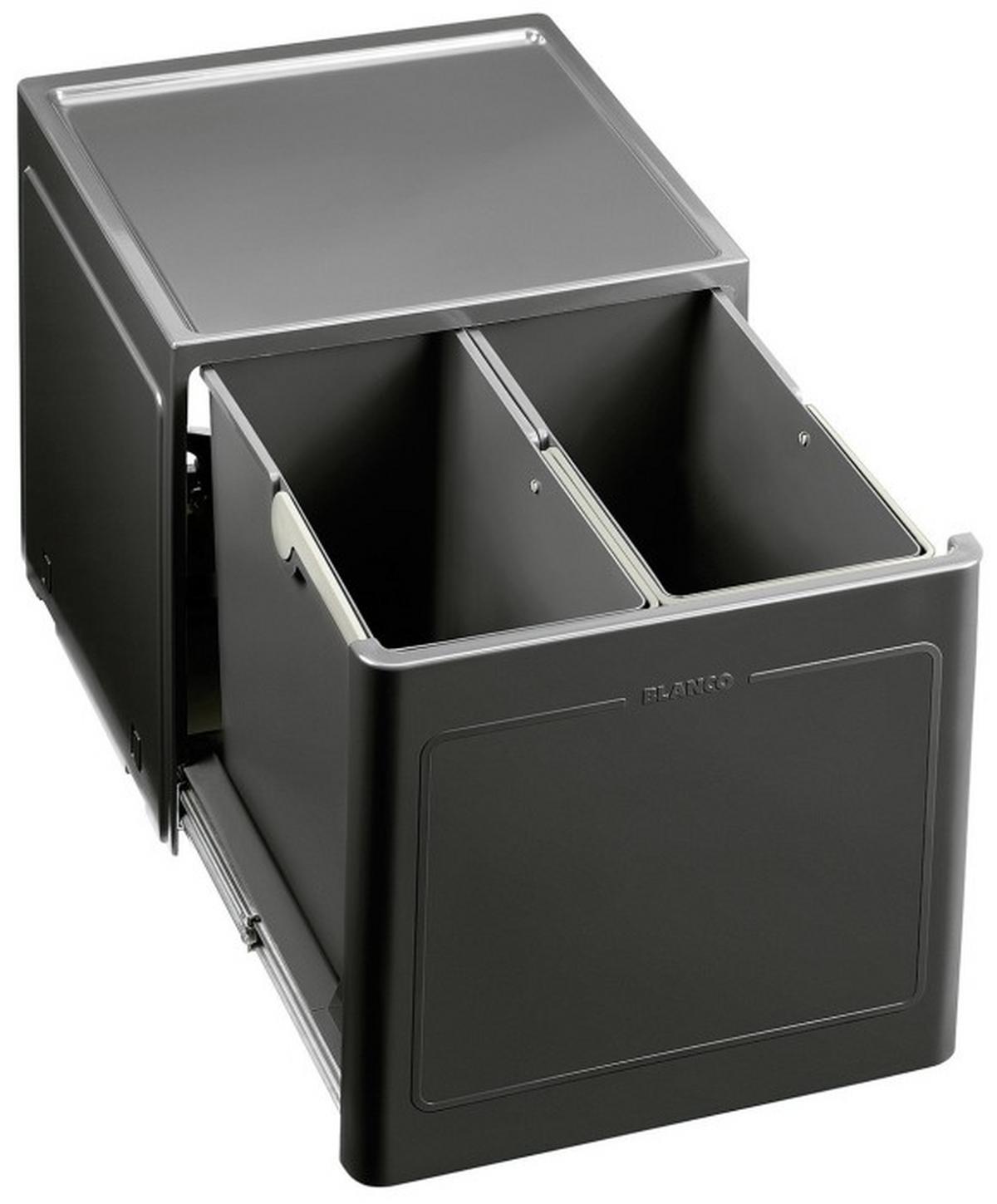 Wenn Mülltrennung doch immer so einfach wäre wie mit dem praktischen Einbauabfallsammler von BLANCO. Der etwa 37,5 x 35 x 40 cm (B x H x T) große Abfallsammler aus Kunststoff besitzt 2 Behälter mit einem Fassungsvermögen von ca. 13L. Diese können getrennt voneinander entleert werden und erleichtern das tägliche Trennen von Recyclingmaterial und Küchenreste.