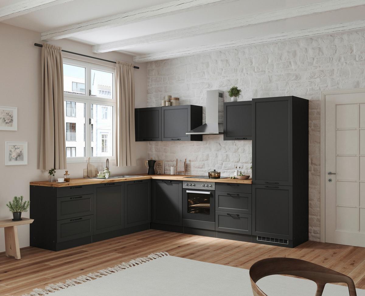 Eckküche Meran ohne Geräte ca. 240x300 cm Grau/Eiche - Eiche Wotan/Schwarz, LIFESTYLE, Holzwerkstoff/Metall (240/300cm) - Held