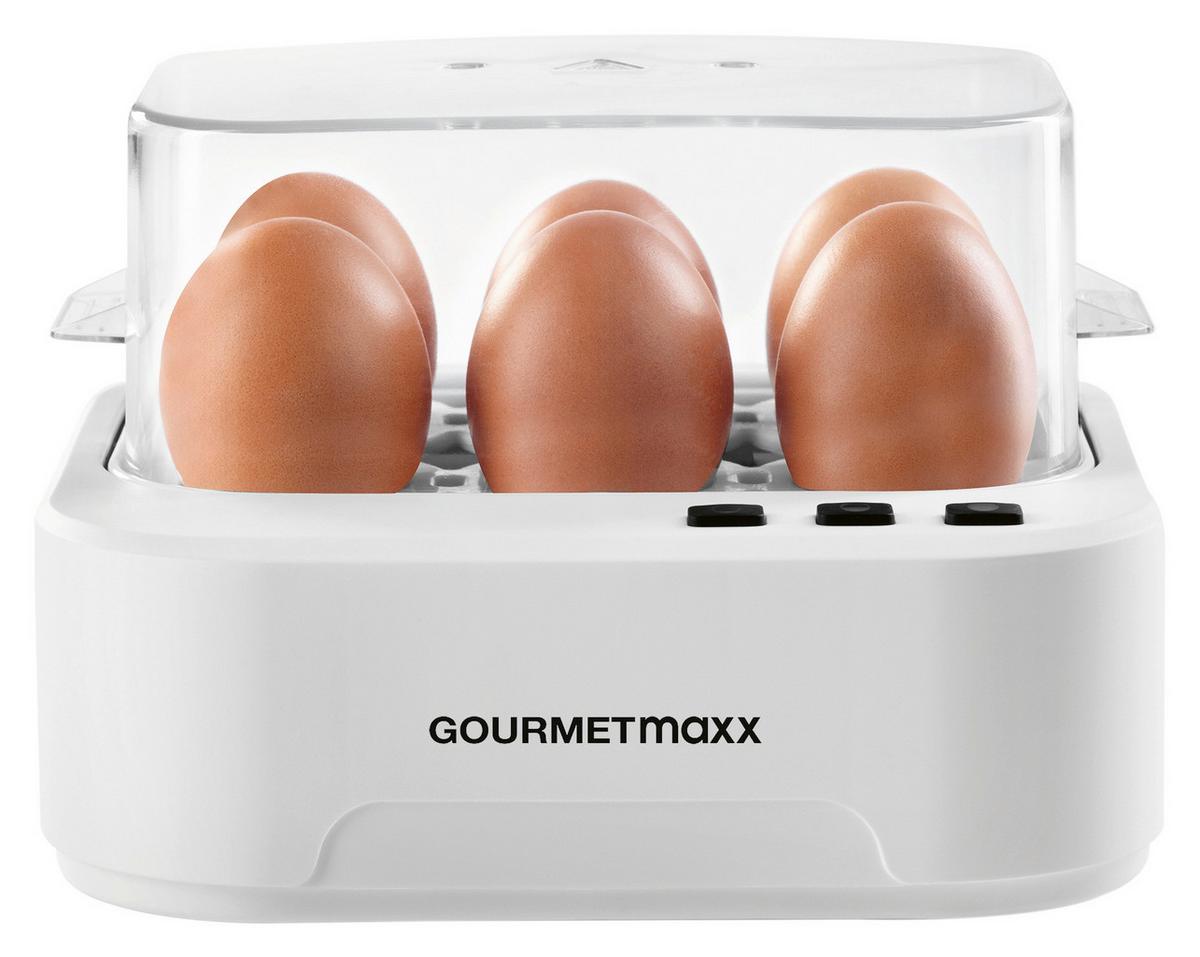 Mit dem Eierkocher von GOURMETmaxx gelingen Ihnen perfekt gekochte Eier im Handumdrehen. Der Eierkocher in Weiß besticht durch sein schlichtes Design und ist ein praktischer Helfer in jeder Küche.