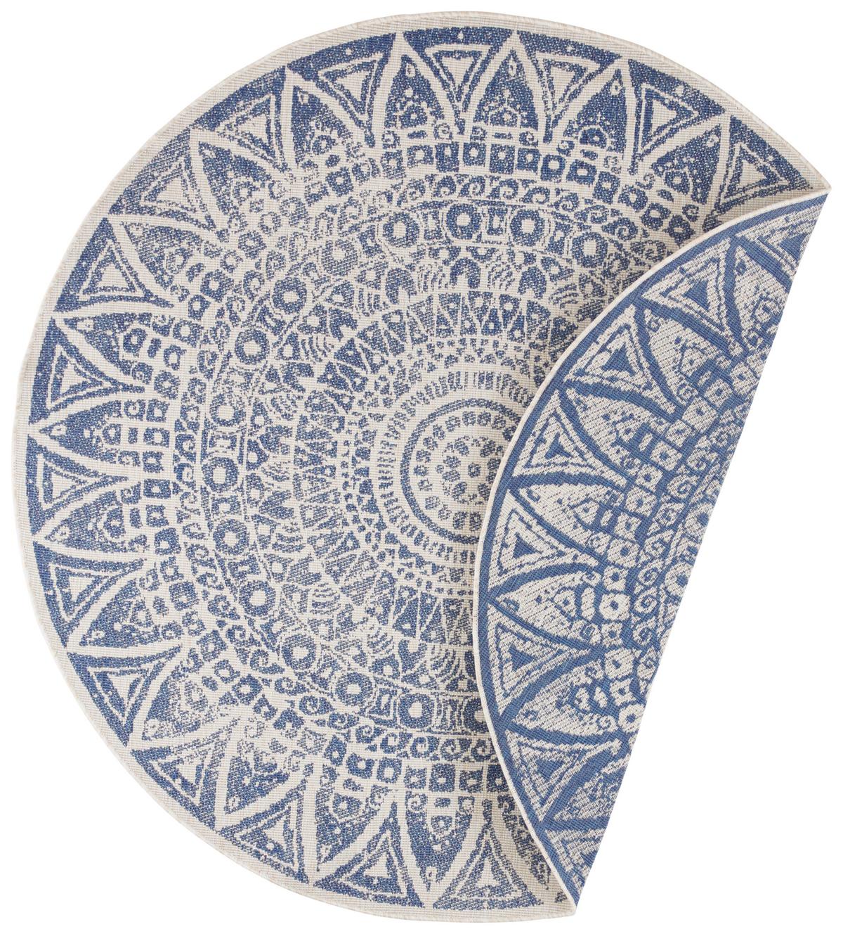 Jetzt ist der Moment: Der Flachwebeteppich Lilja Blau 240 Cm in Blau und Creme (ca. 240 cm) mit Mandala-Motiv wartet darauf, dein Raumgefühl zu verändern!