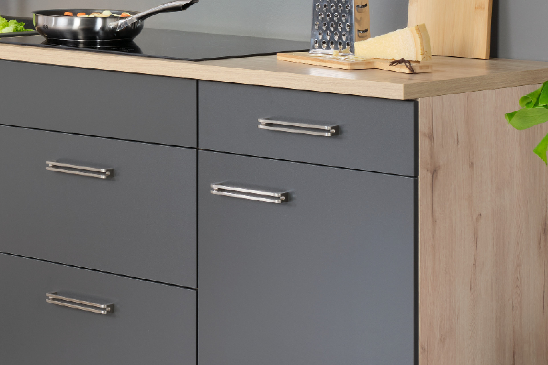 Anthrazit wartet mit viel Stauraum auf. Zudem ist die Küchenzeile