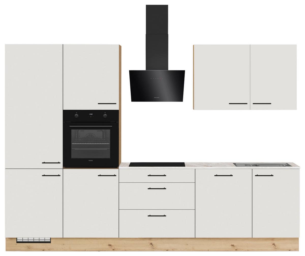Küchenblock IP1200 o. Geräte Weiß - Eichefarben/Schwarz, MODERN, Holzwerkstoff/Metall (310cm) - Impuls