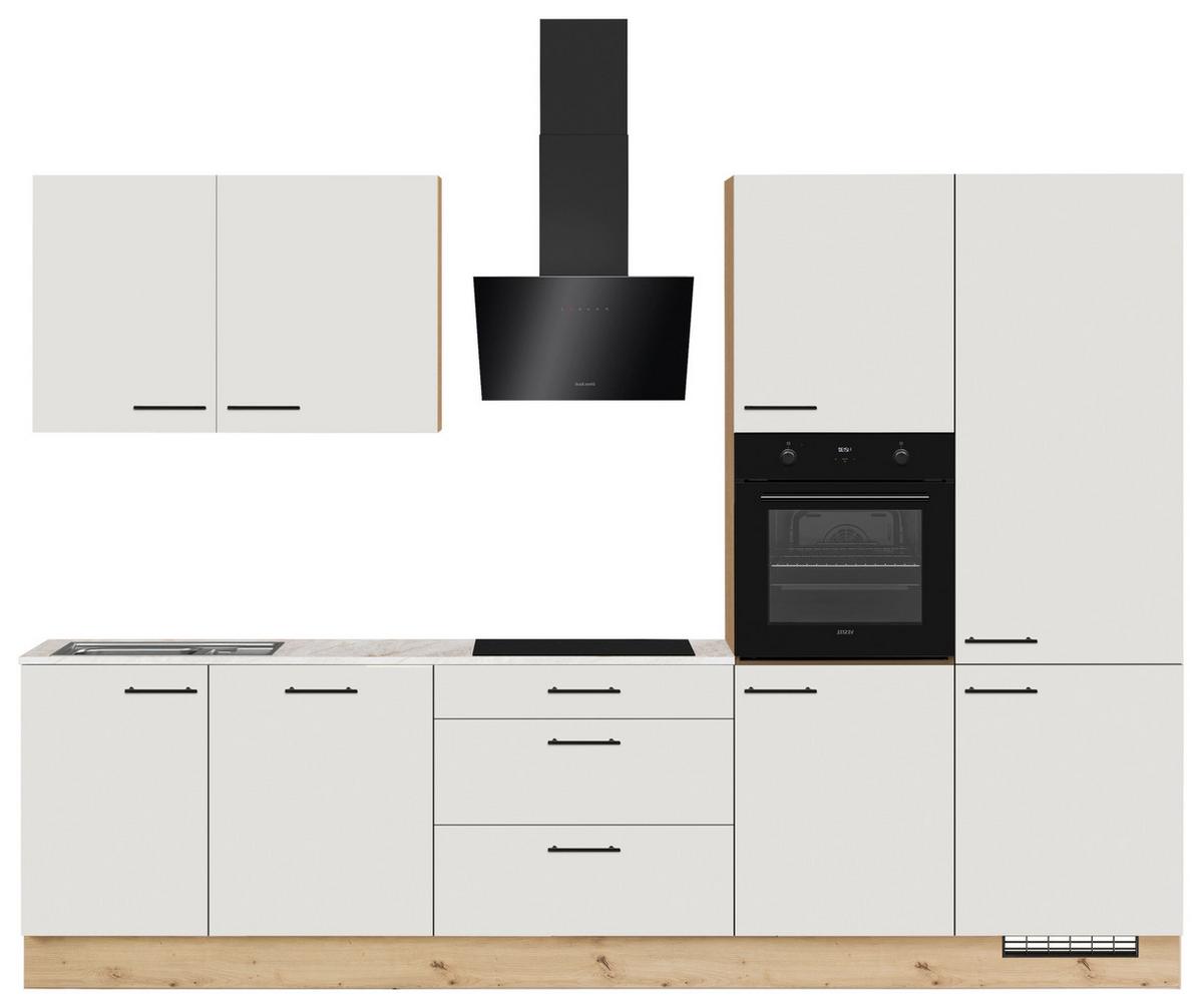 Küchenblock IP1200 o. Geräte Weiß - Eichefarben/Schwarz, MODERN, Holzwerkstoff/Metall (310cm) - ImpulsImpuls