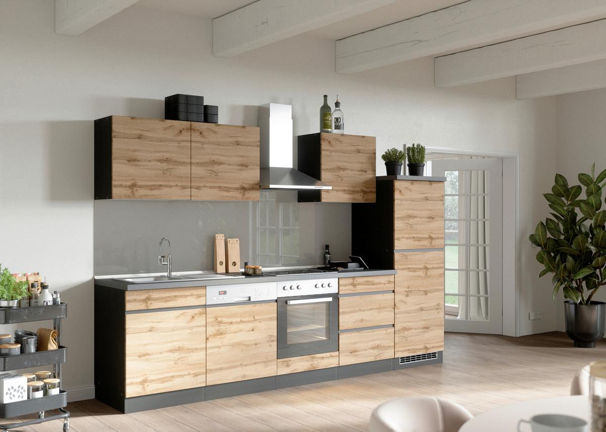 Küchenblock Turin ohne Geräte ca. 300 cm Eiche/Grau - Eiche Wotan/Graphitfarben, Design, Holzwerkstoff (300cm) - Held