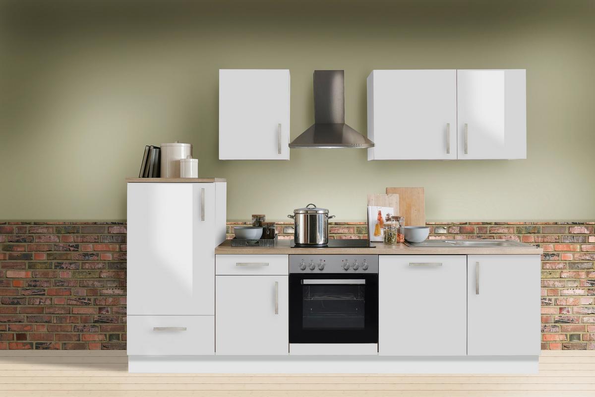 Küchenblock White-Premium Weiß Hochgl. B: ca. 280cm - Weiß Hochglanz/Silberfarben, KONVENTIONELL, Holzwerkstoff/Metall (280cm) - Menke