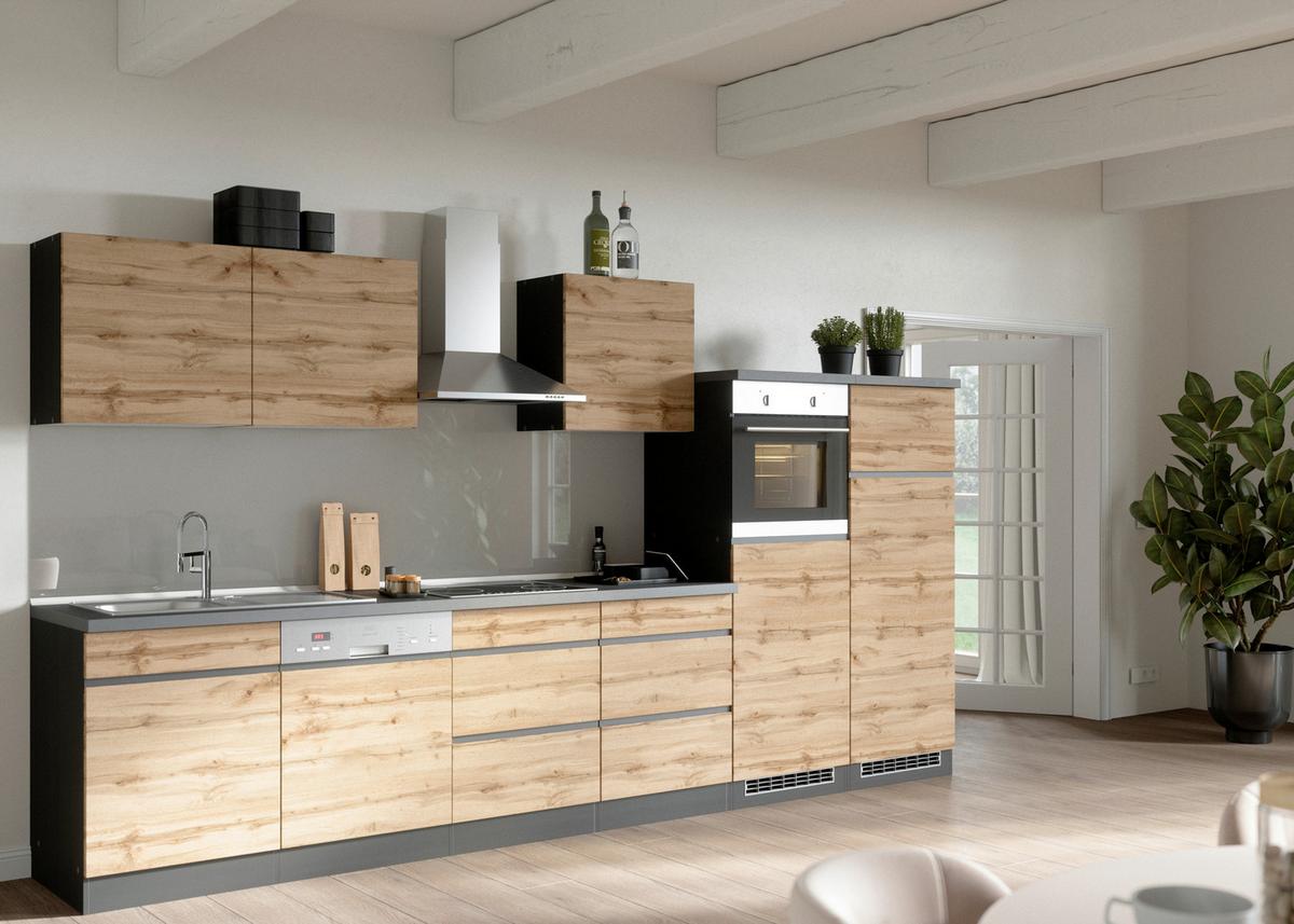 Küchenzeile Turin mit Geräten ca. 360 cm Graphit/Eichen