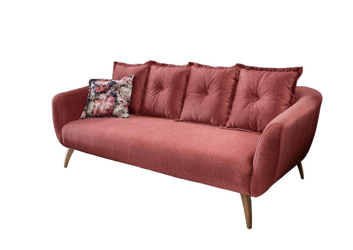 3-Sitzer-Sofa Baggio Koralle Velours - Koralle/Buchefarben, MODERN, Holz/Textil (236/94/103cm) - Livetastic