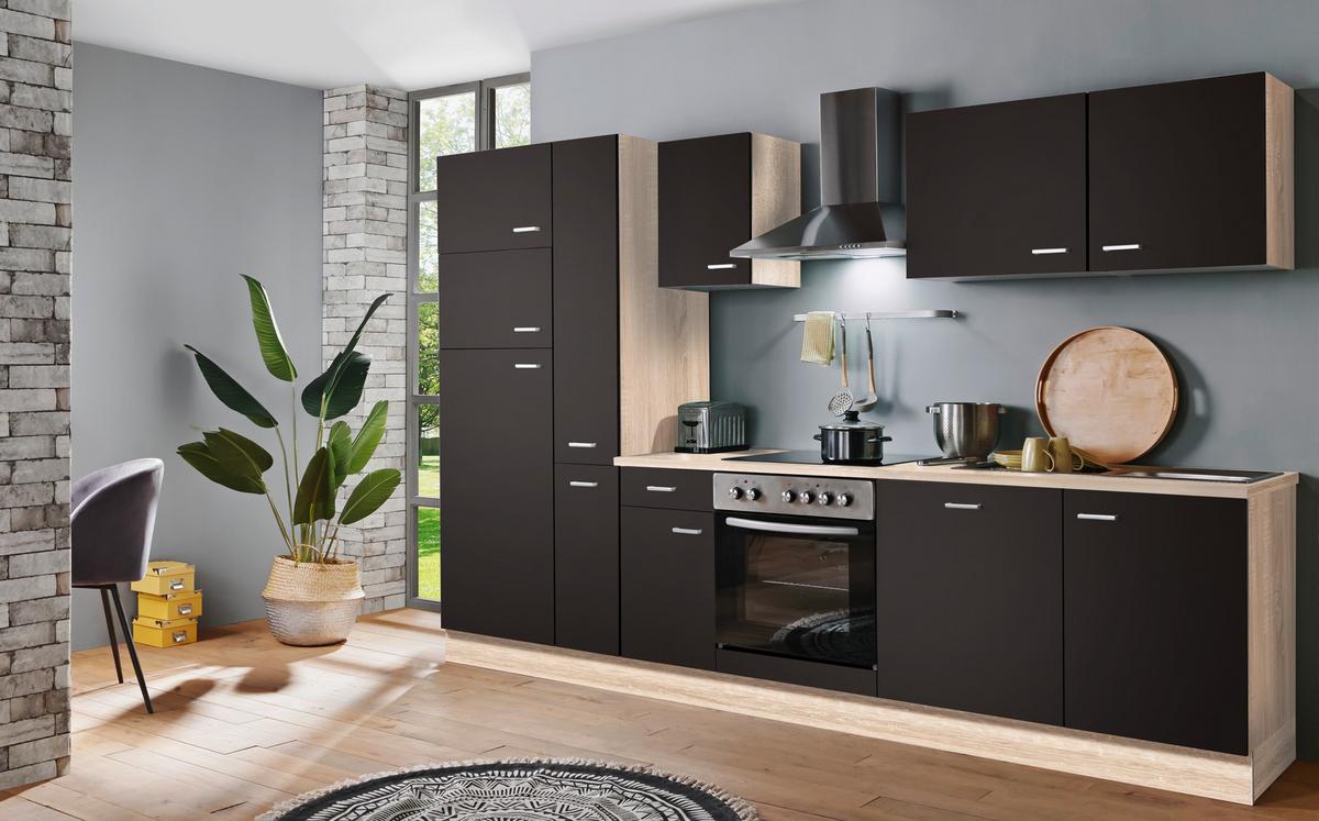 Menke Küchenblock Classic Dunkelbraun/Eiche ca. 300cm - Dunkelbraun/Silberfarben, KONVENTIONELL, Holzwerkstoff/Kunststoff (300cm) - Menke