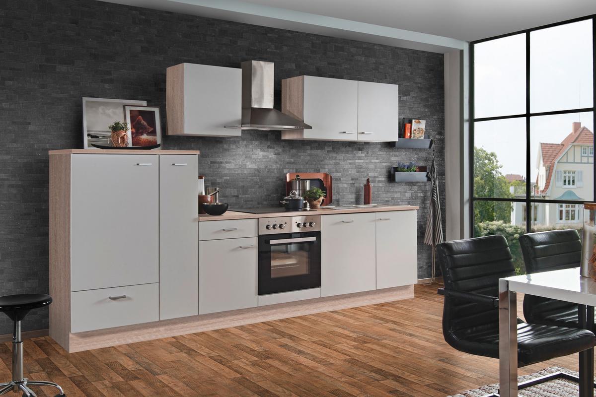 Menke Küchenblock Classic Weiß/Eiche ca. 310 cm - Silberfarben/Weiß, KONVENTIONELL, Holzwerkstoff/Kunststoff (310cm) - Menke