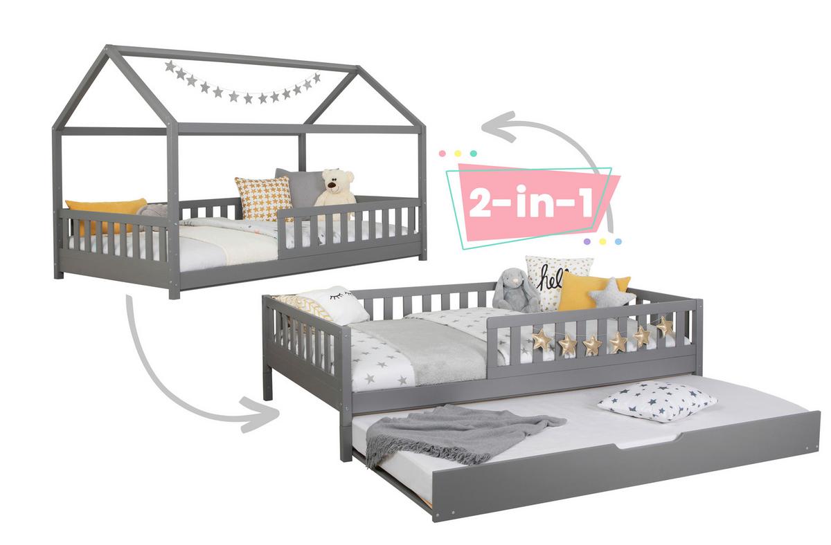 Ausziehbett Holz Duo ca. 100x200 cm Kiefer Hellgrau