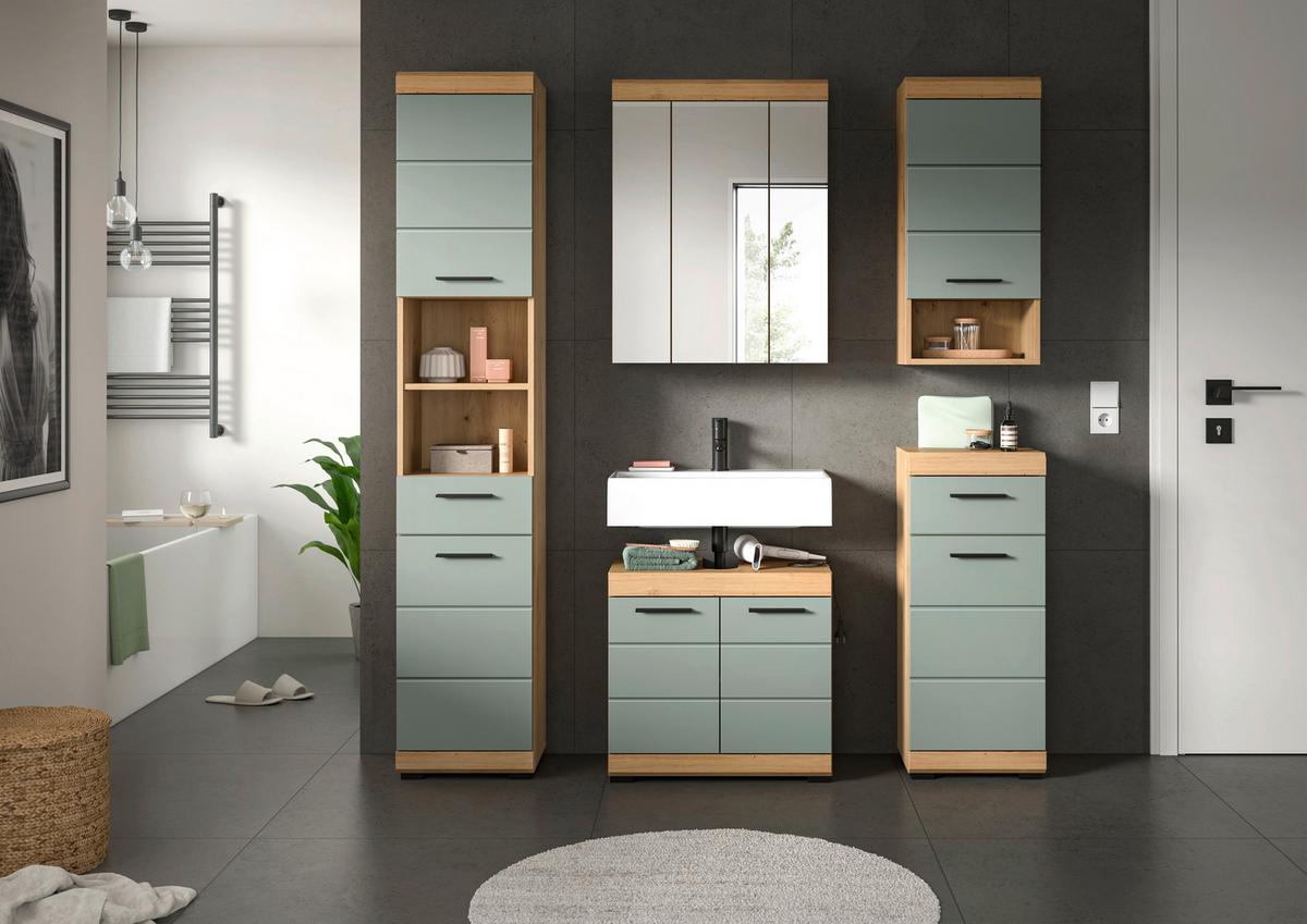 Badezimmer Scout 5-tlg. ca. 134 cm Salbeigrün - Salbeigrün/Eichefarben, MODERN, Glas/Holzwerkstoff (134cm) - MID.YOU