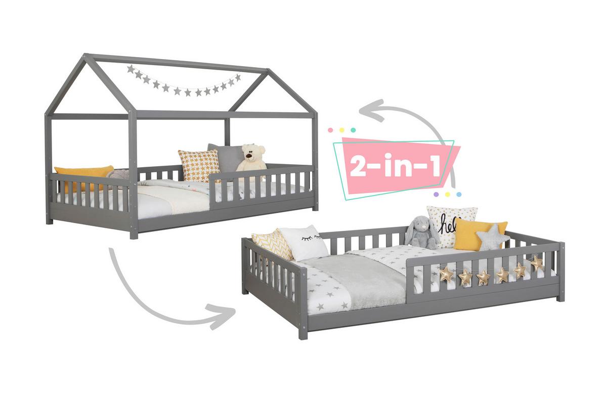 Kinder-/Jugendbett Duo Hellgr. ca. 100x200 cm Kiefer massiv - Hellgrau/Naturfarben, MODERN, Holz (100/200cm) - MID.YOUMID.YOU