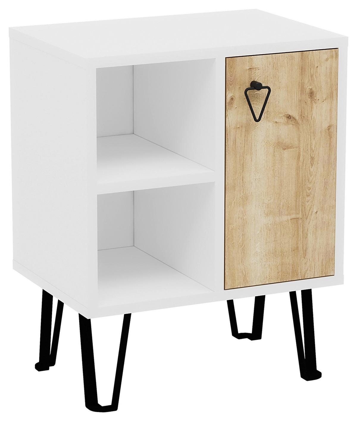 Nachtkästchen Neptun Weiß, Eichefarben - Eichefarben/Weiß, Design, Holzwerkstoff (50/63/35cm) - MID.YOU