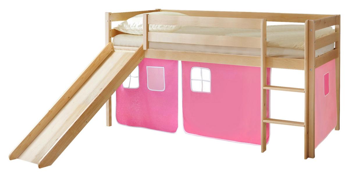 Spielbett "Manuel",aus Kiefer, rosa/kieferfarben/hellrosa