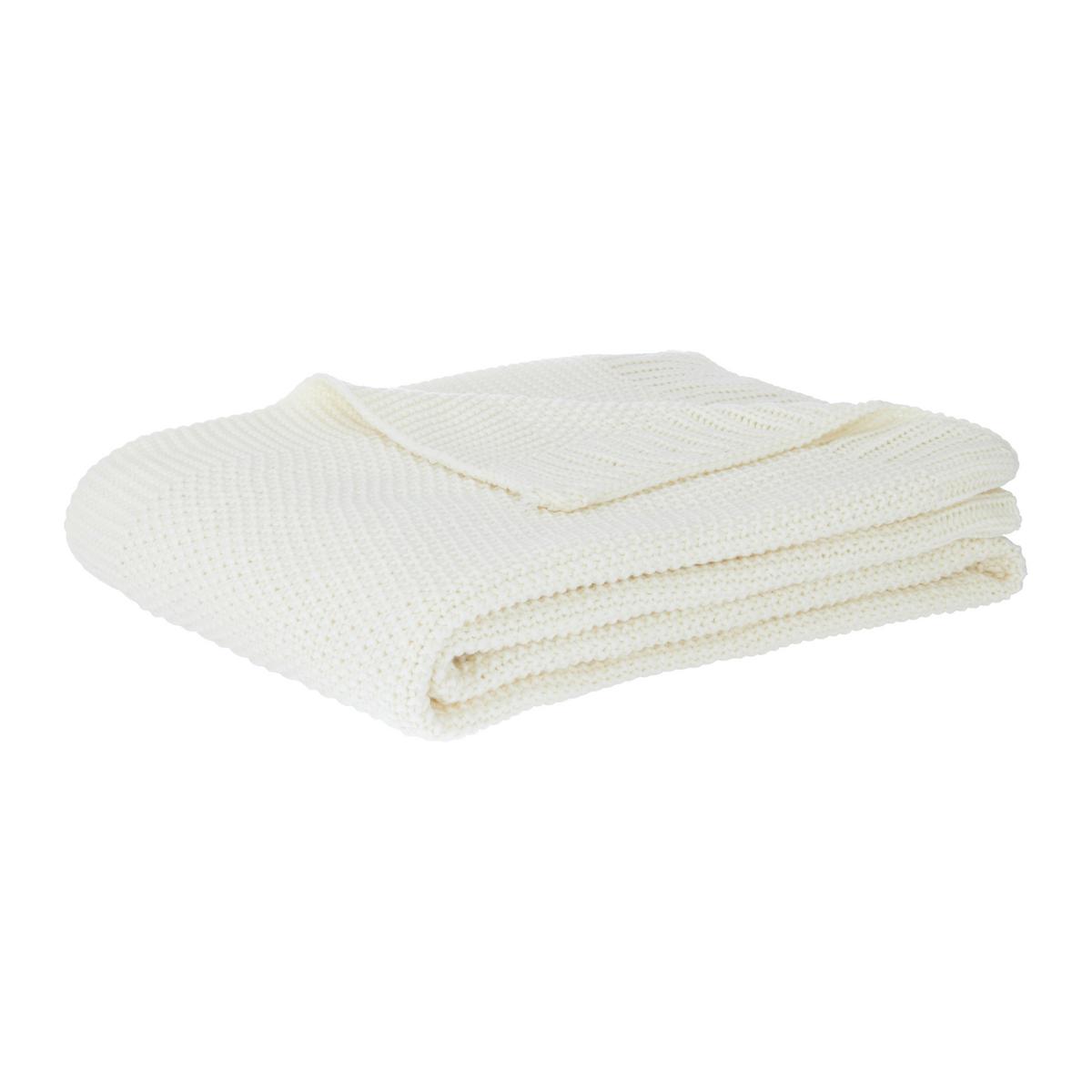 Mit der Strickdecke OLLI in Weiß holst du dir pure Gemütlichkeit nach Hause