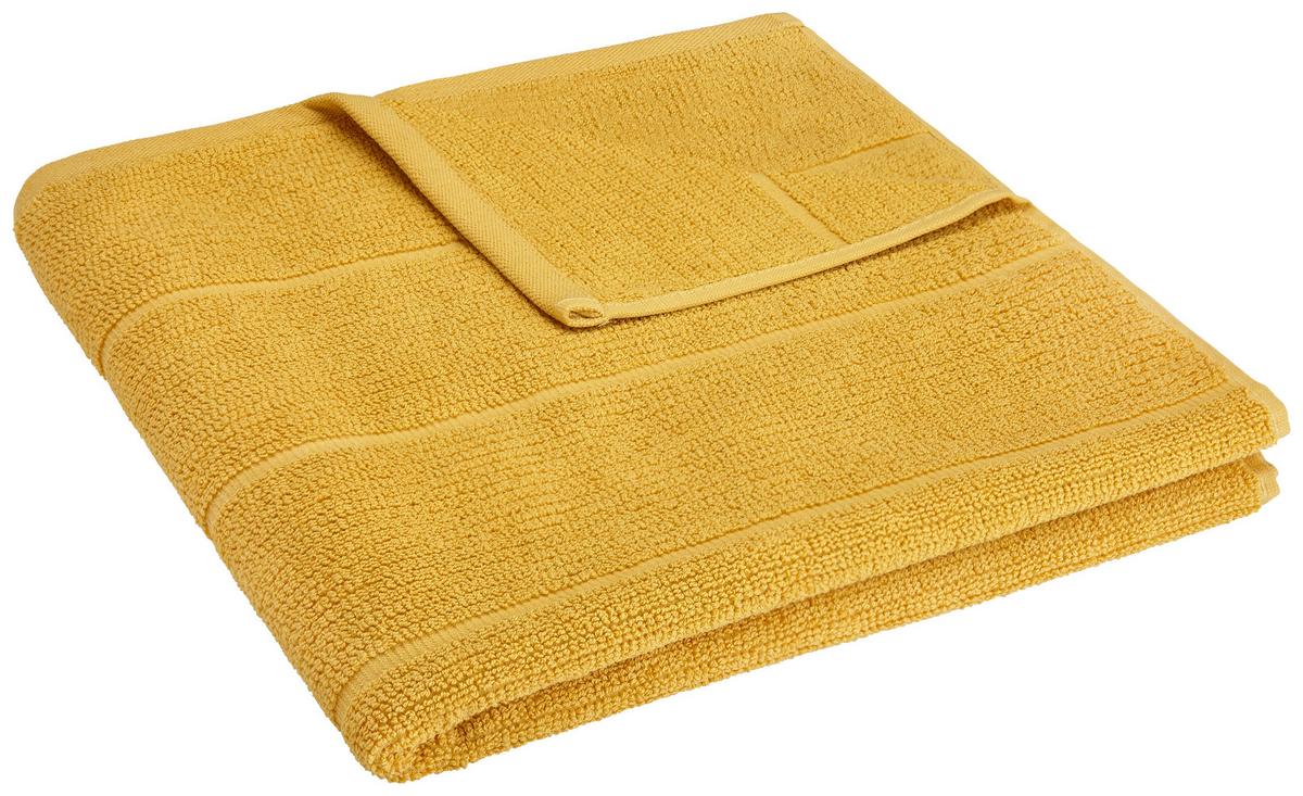 Das Duschtuch aus 100 % Baumwollfrottier in Gelb besticht durch seine dezente und trotzdem auffällige Optik.