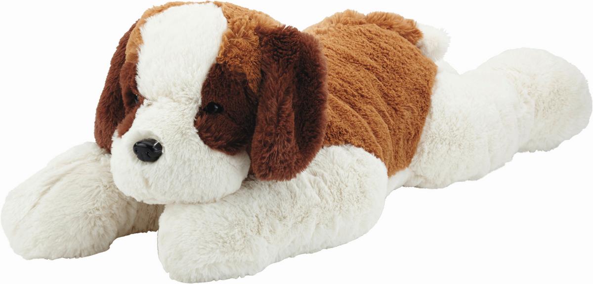 Jedes Kind braucht einen kuscheligen Freund als Begleiter in Kindheitstagen. Dieses Plüschtier lässt die Herzen Ihres Nachwuchses höher schlagen. Der knuddelige Plüsch-Hund ist ein treuer und besonders anschmiegsamer Gefährte. Das kuschelige Fell aus 100 % Polyester in Weiß und Brauntönen, die weichen Hängeohren und süßen Knopfaugen aus Kunststoff machen den Plüsch-Hund unwiderstehlich. Mit seiner stattlichen Länge von. ca. 75 cm eignet er sich hervorragend als Schmusetier. Und sollte es nötig sein, darf der Plüsch-Hund auch bis 40° C in der Waschmaschine gewaschen werden, so bleibt er immer hygienisch sauber und ist auch für Allergiker ein perfektes Geschenk. Ein Plüschtier, das auch Ihrem Kind Freude bereiten wird!