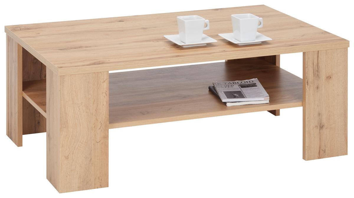 Dieser Couchtisch in Eiche NB besticht durch Geradlinigkeit und seine robuste Optik. Der ca. 103 x 39 x 63 cm (B x H x T) große Couchtisch aus MDF in Wotan Eiche passt dank seines schlichten Designs zu vielen Einrichtungsstilen und bietet Ihnen zusätzlich unter der Tischplatte eine praktische Ablagefläche für Zeitschriften, Bücher, Fernbedienungen und vieles mehr.