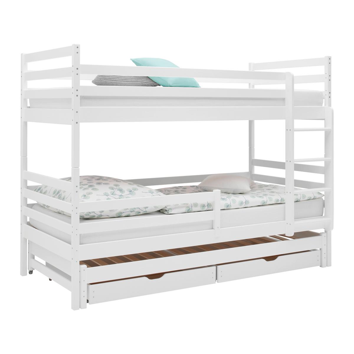 Mit dem Etagenbett MILA in strahlendem Weiß schaffst du im Handumdrehen ein gemütliches und platzsparendes Reich für deine Kleinen. Das freundliche Design und die helle Farbe integrieren sich wunderbar in jedes Kinderzimmer.