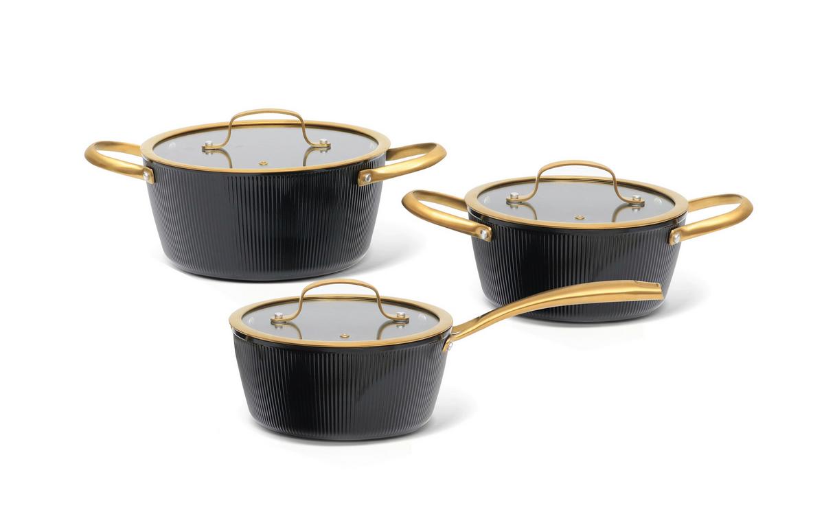Kochtopfset Goldy Schwarz/Goldfarben, 6-teilig