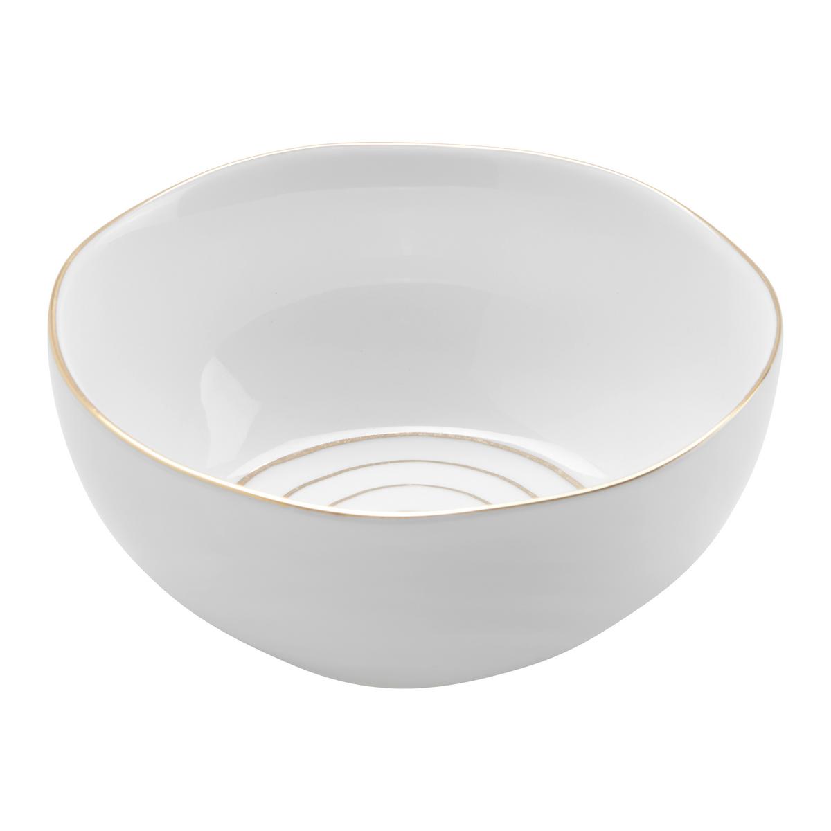 Entdecken Sie unsere elegante Müslischale in zeitlosem Weiß mit goldenen Akzenten! Mit einem Durchmesser von ca. 15 cm und einer Füllmenge von ca. 360 ml ist diese runde Keramikschale perfekt für Ihr Müsli oder andere köstliche Frühstücksgerichte geeignet.