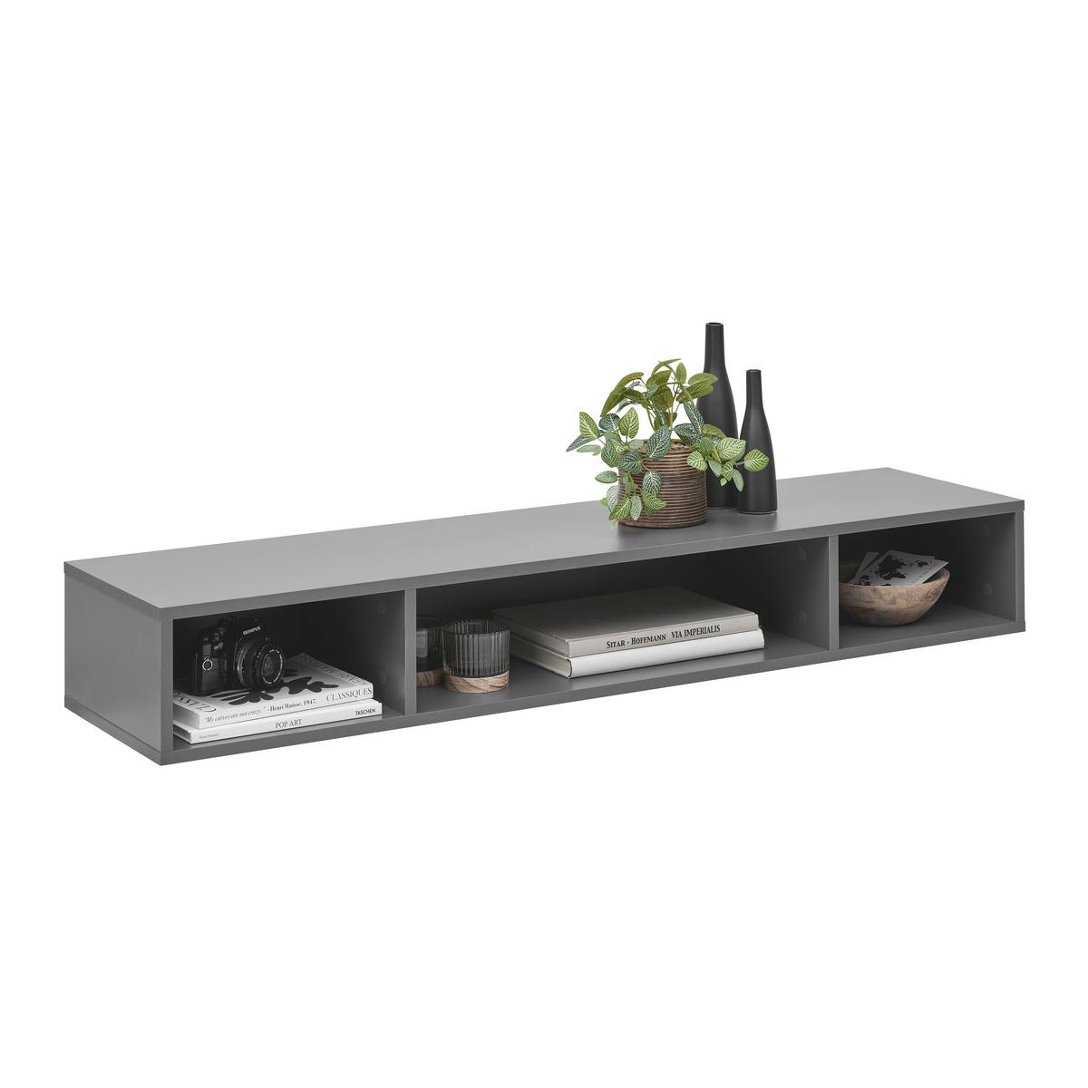Das Regal LUGO in Anthrazit bietet stilvollen Stauraum für Ihr Zuhause. Mit den Maßen von ca. 135 x 19,2 x 34,4 cm (B x H x T) integriert sich dieses Möbelstück optimal in verschiedene Raumkonzepte.