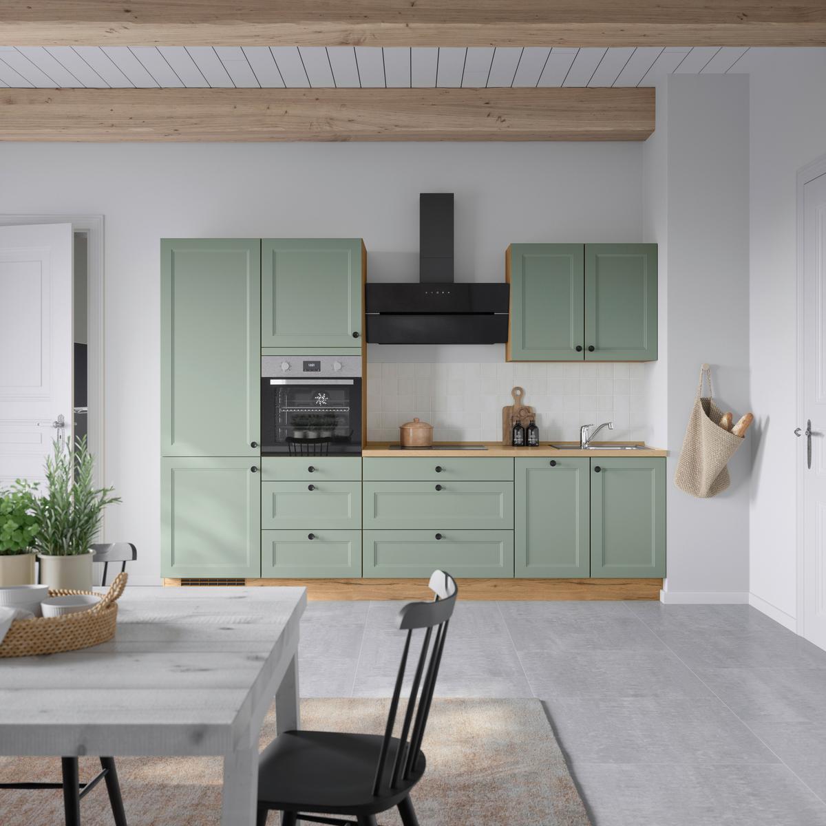 Küchenblock Cascada High m. Geräten Schilfgrün - Schilfgrün/Eichefarben, MODERN, Holzwerkstoff/Metall (300cm) - Nobilia
