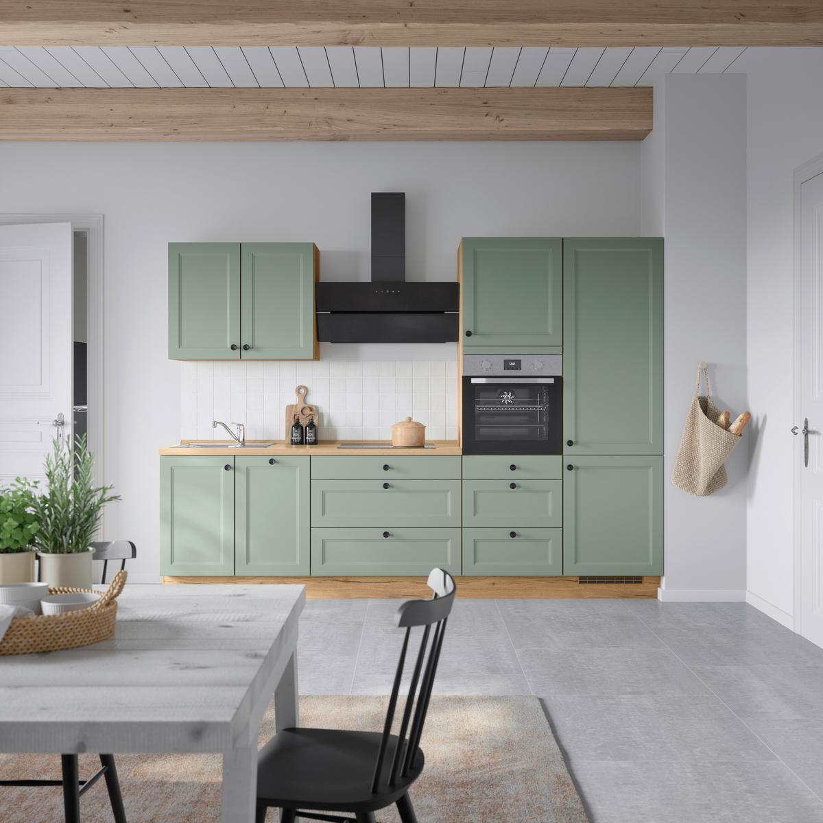 Küchenblock Cascada High m. Geräten Schilfgrün - Schilfgrün/Eichefarben, MODERN, Holzwerkstoff/Metall (300cm) - Nobilia