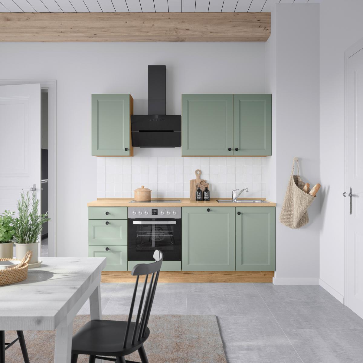 Küchenblock Cascada High m. Geräten Schilfgrün - Schilfgrün/Eichefarben, MODERN, Holzwerkstoff/Metall (210cm) - Nobilia
