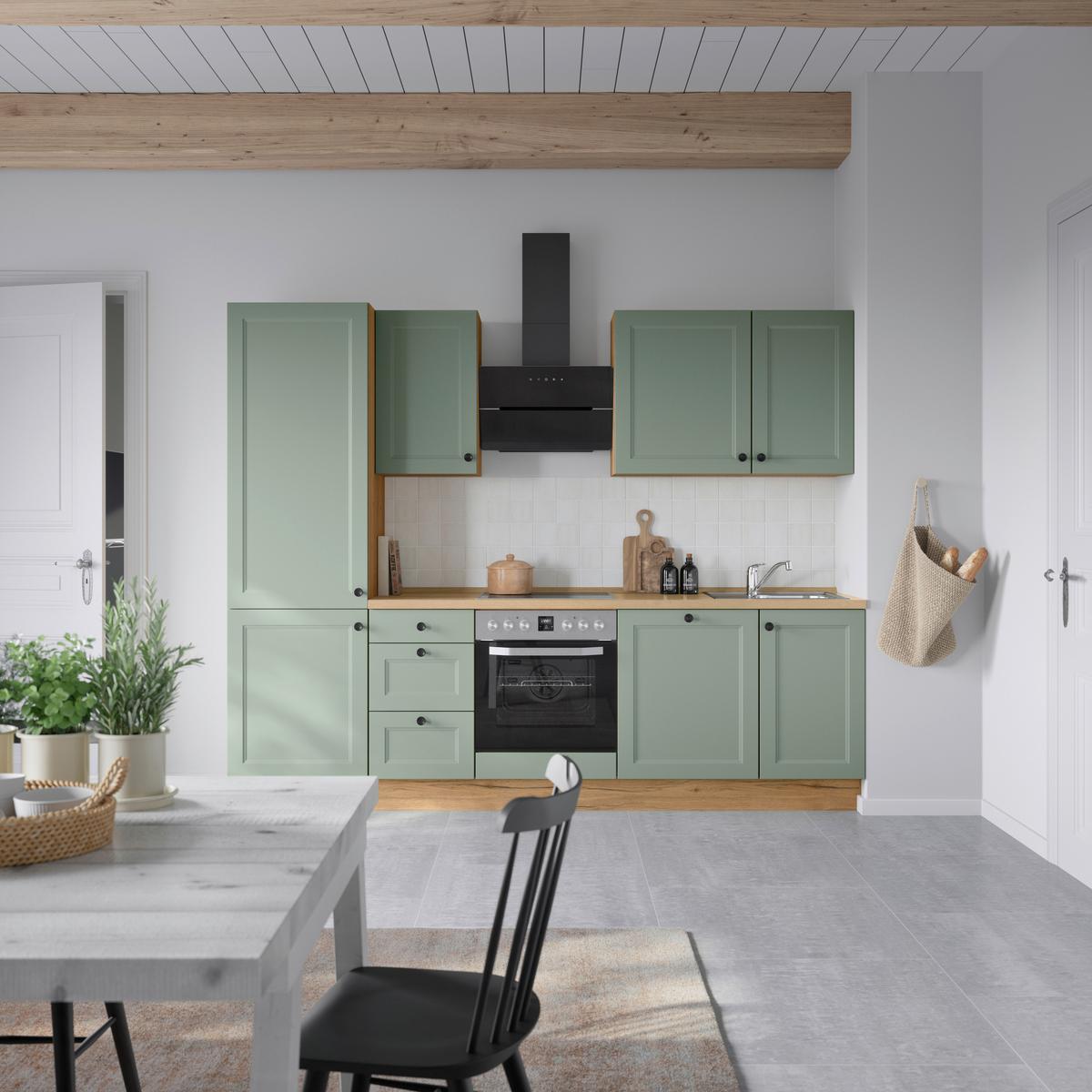 Küchenblock Cascada High m. Geräten Schilfgrün - Schilfgrün/Eichefarben, MODERN, Holzwerkstoff/Metall (270cm) - Nobilia
